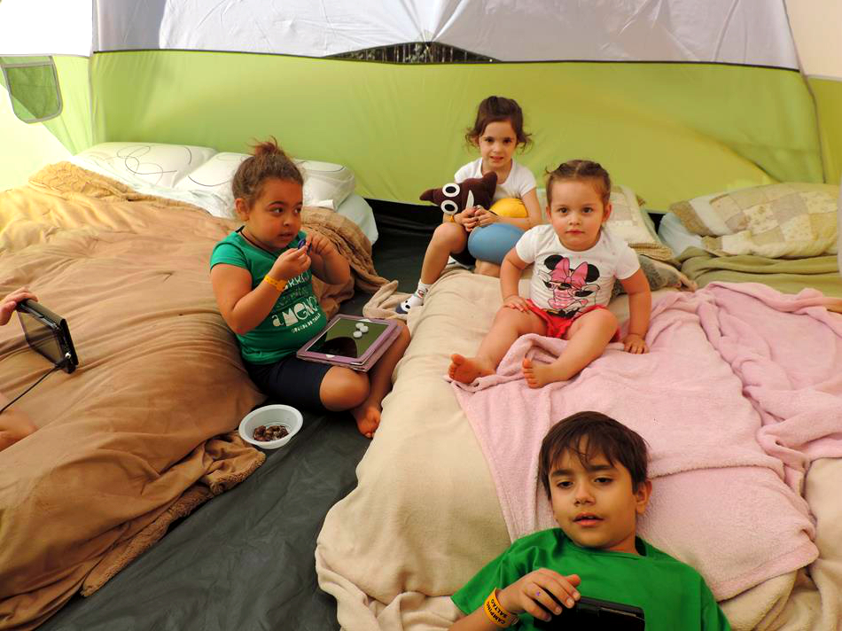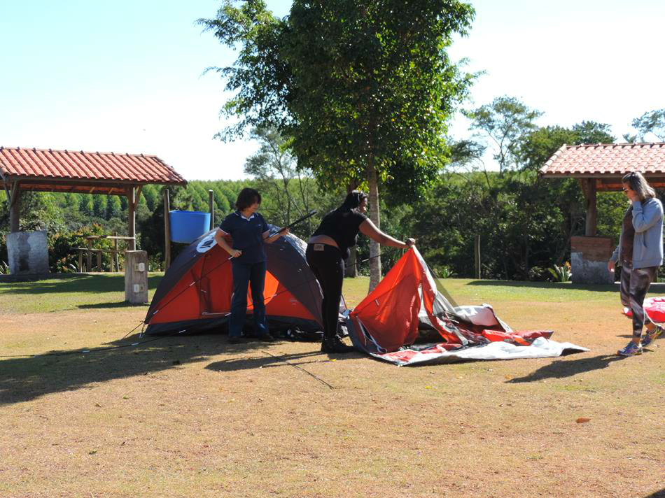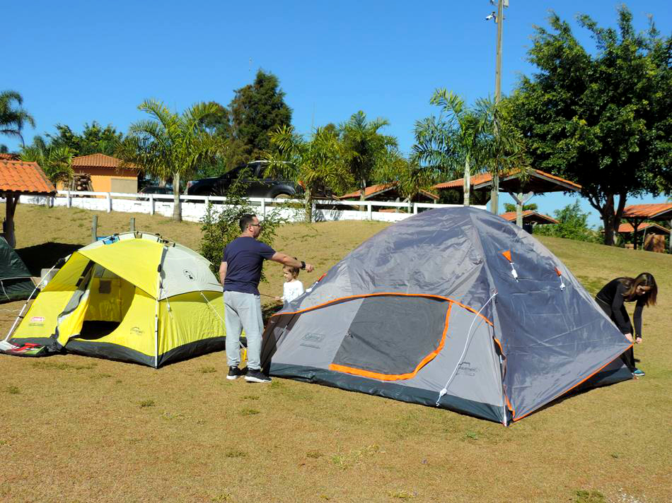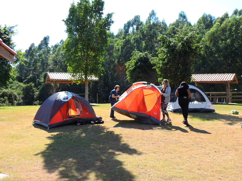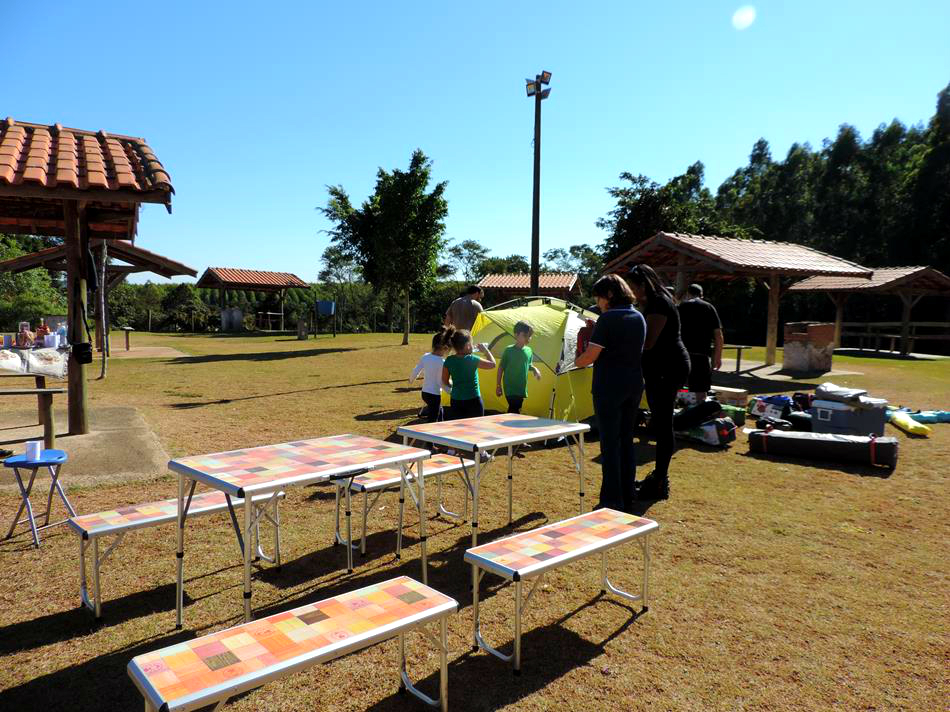 O pessoal chegou ao camping na manhã do sábado e já estávamos esperando! Cada família recebeu sua barraca, seu colchão e os demais equipamentos que seriam utilizados pelo grupo e orientados por nossa equipe, em pouco tempo nossa Vila estava montada! Foi muito legal ver as crianças junto de seus pais montando todas as barracas, enchendo os colchões… a felicidade pela descoberta no novo estava na cara de cada um!