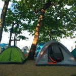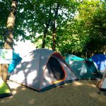 O espaço não é muito grande então as barracas tem que ser montadas pertinho umas das outras para caber todo mundo! Os carros ficam estacionados em uma área em frente ao camping.