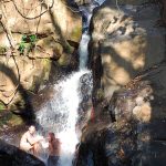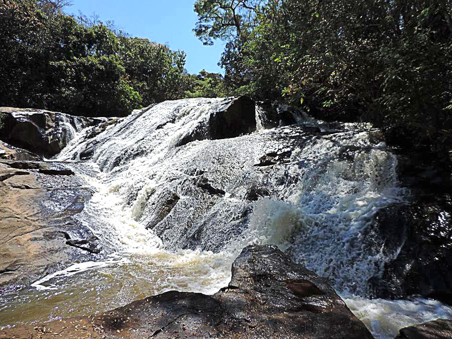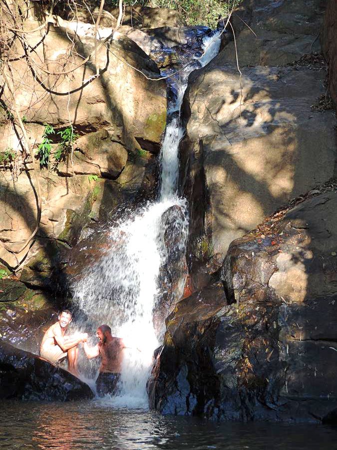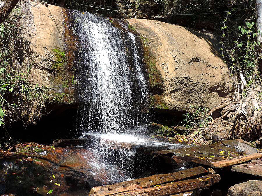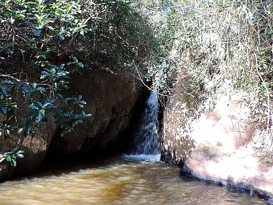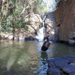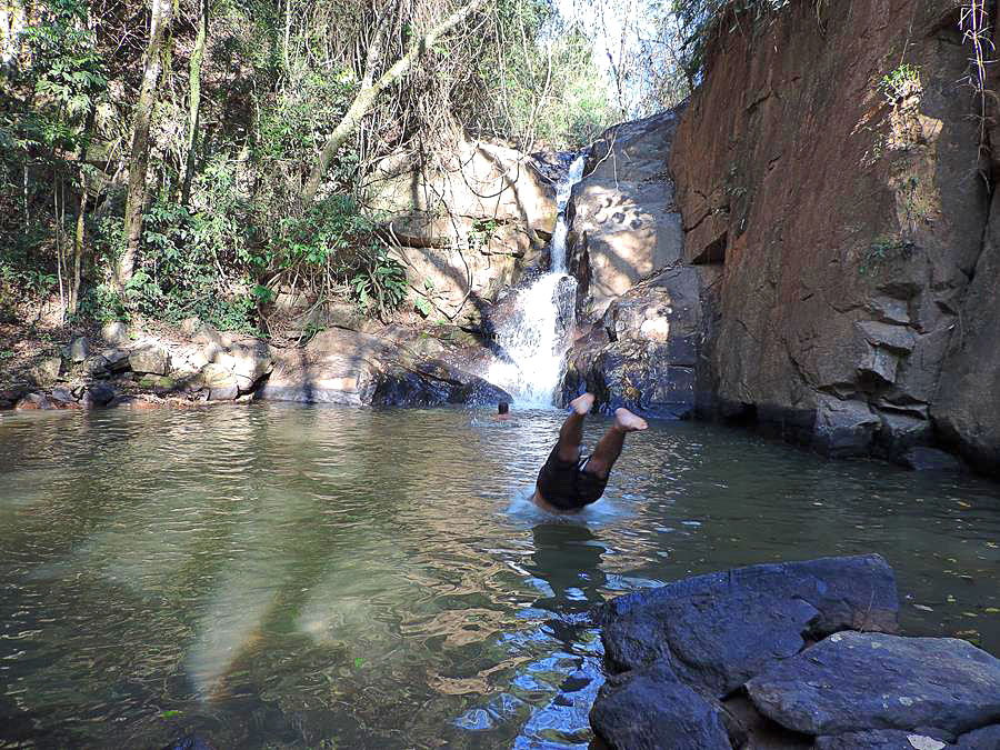 A trilha até a cachoeira é bem curtinha, coisa de 5 minutos e a cachoeirinha tem um lindo poço que convida para um mergulho!