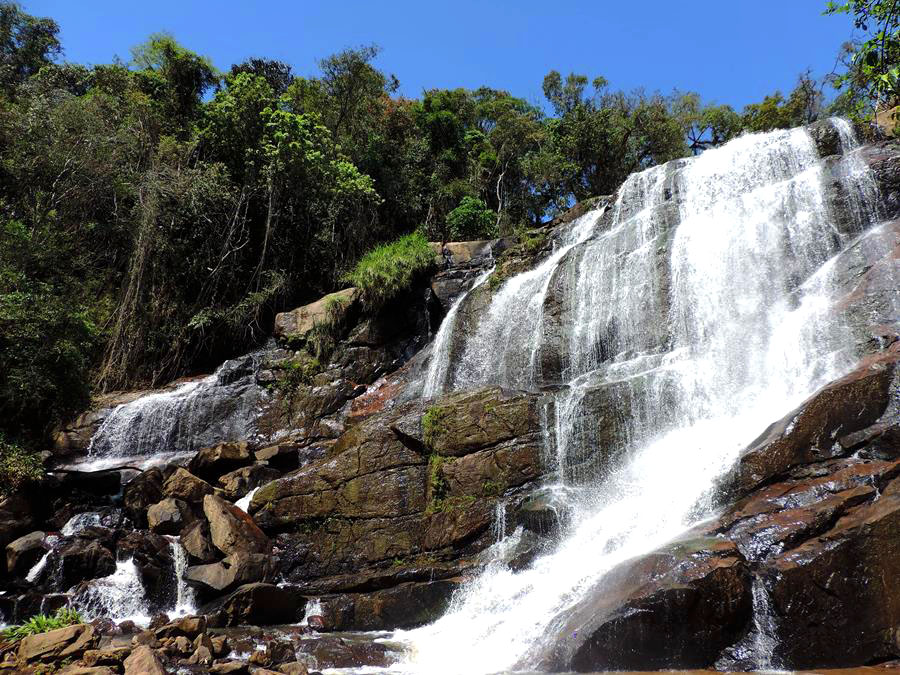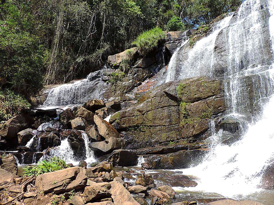 Com um volume médio de água a cachoeira é pequena (10 metros) porém muito bonita.