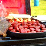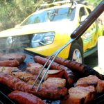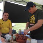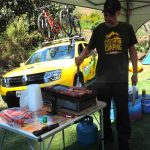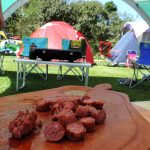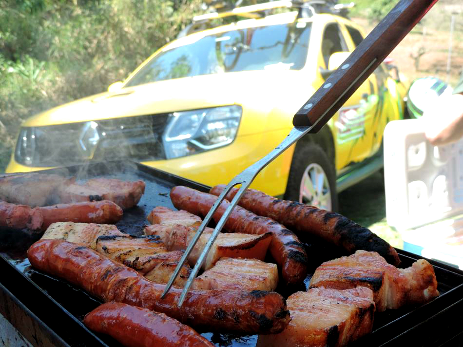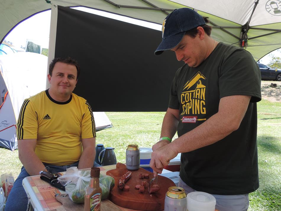Ocupamos um espaço bem ao lado do Riozinho que passa na propriedade. Este rio é o mesmo que desce da Cachoeira dos Pretos, a principal atração da cidade e que fica a cerca de 300 m do camping. Na hora do almoço a galera se juntou para bater papo e comer as porções de carne feitas na chapa pelo André!