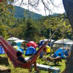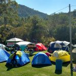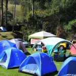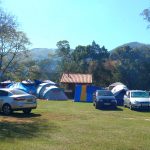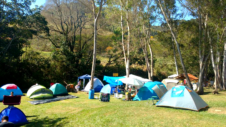 Dessa vez ficamos acampados no Camping Zé Roque, um espaço bem grande todo gramado e arborizado, as margens do Rio Piracicaba com banheiros femininos e masculinos, vários pontos de energia e uma vista de tirar o folego, rodeado por montanhas.