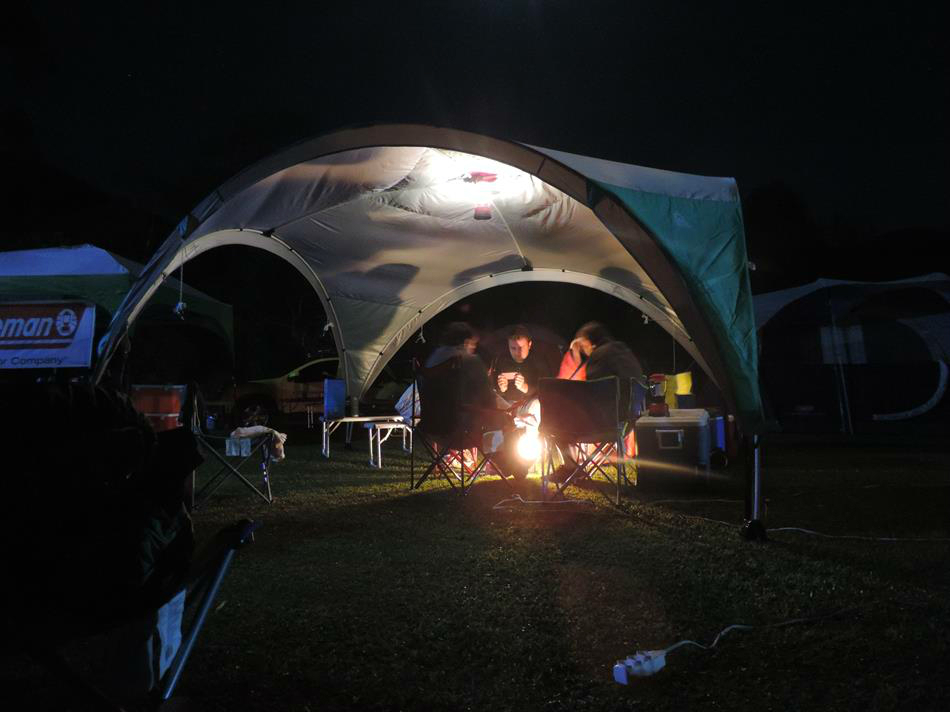 O pessoal foi chegando durante o dia e a noite o camping estava lotado. O cair da noite veio trazendo um friozinho e na madrugada a friaca apertou! Ainda bem que fomos preparados!.