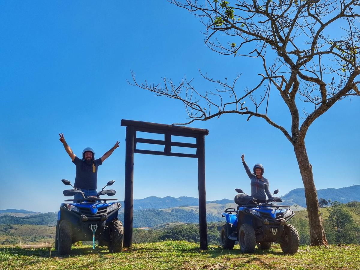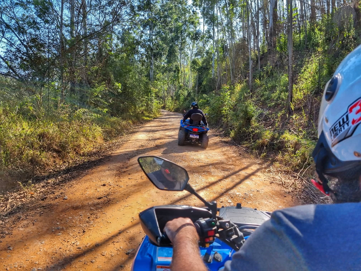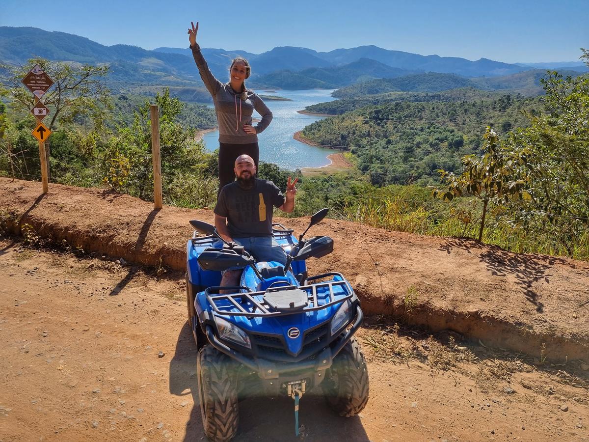 No dia seguinte pulamos da cama logo cedo para curtir um passeio de quadriciclo com a empresa Pira No Tour. Nosso passeio foi de 13km e passamos por mirantes lindos e até uma cachoeira, mas eles tem o maior passeio do estado de São Paulo com 54 km. Depois deste passeio delicioso tomamos uma bela caipirinha no Restaurante 3 Josés e comtemplamos a vista incrível do local.