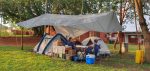 Chegamos no final da tarde e aproveitamos a trégua da chuva para montar a tarp que ganhamos dos nossos amigos da Huts Tarp.