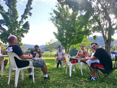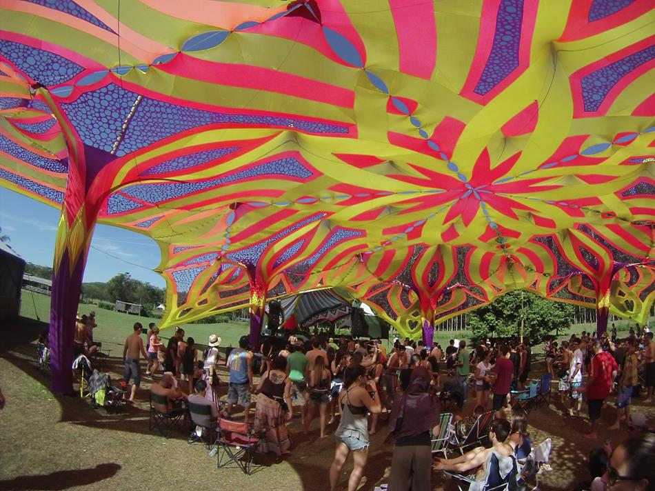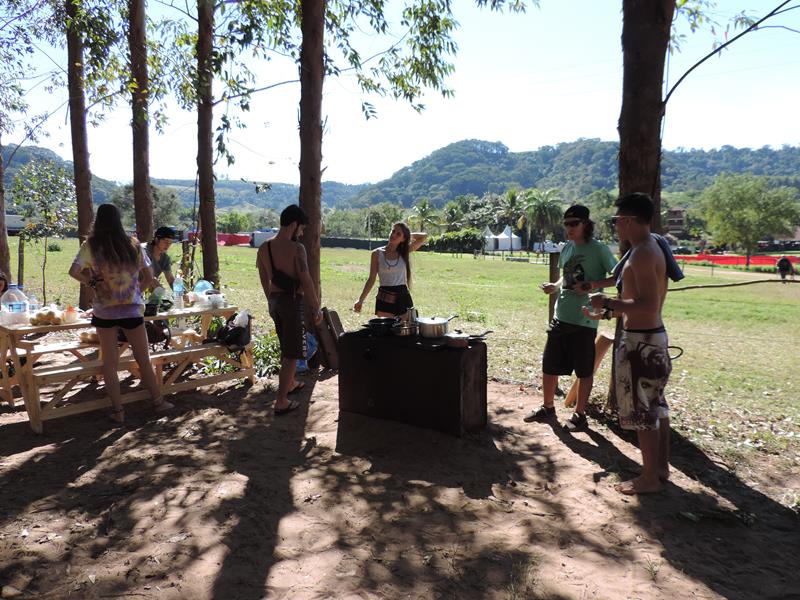 Chegamos ao Festival na quarta-feira no final da tarde, embora os portões abrissem só as 24h, fomos convidados pelo Pedro (proprietário do Festival) a chegar antes, o que foi muito legal porque pudemos montar nossa barraca bem na entrada da área de camping para poder conhecer muitas pessoas, pois todos precisavam passar por ali para sair ou entrar no camping!