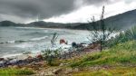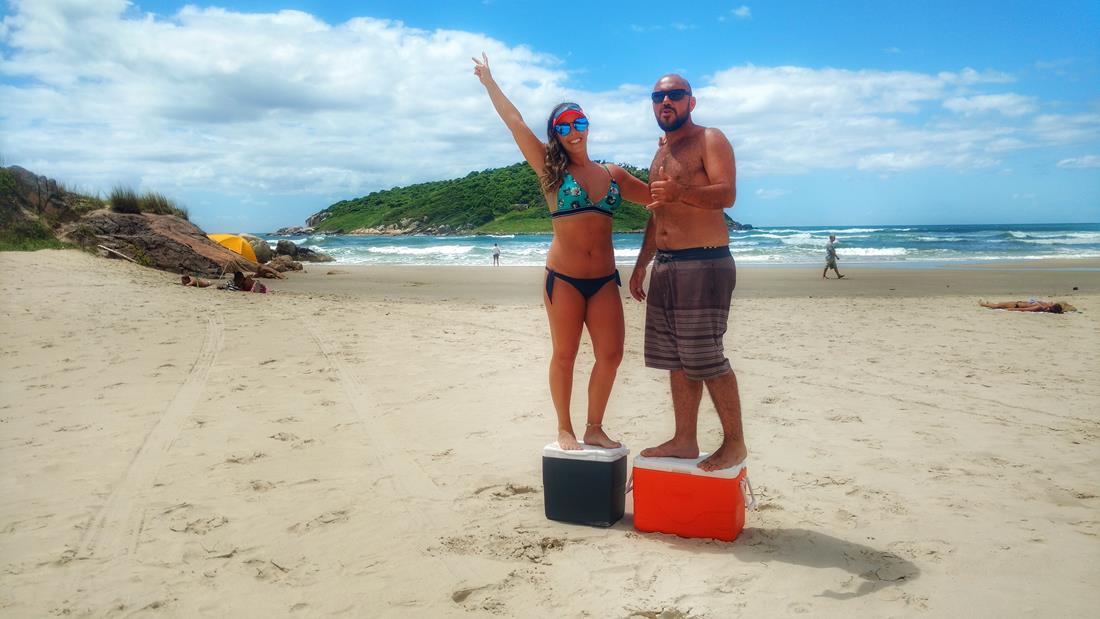 Saímos de Araraquara as 4:30h com previsão de chegada ao nosso primeiro destino as 16h30, porém pela primeira vez em 3 anos tivemos problemas com o ” Por aí de Barraca Móvel” ! Quando faltavam cerca de 350km para chegarmos a Praia do Rosa, paramos em um congestionamento e o carro começou a fazer um barulho muito forte que parecia vir do motor. Paramos no acostamento e chamamos o guincho da seguradora para irmos até a oficina credenciada mais próxima que ficava na cidade de Joinville/SC, 85km pra frente de onde estávamos… Chegando lá descobrimos que o alterador do carro teria de ser trocado e que só ficaria pronto depois de alguns dias já que era feriado. Para seguirmos viagem pedimos um carro reserva na seguradora e passamos toda nossa bagagem para o novo carro (ficou bem apertado sem o bagageiro pra ajudar).