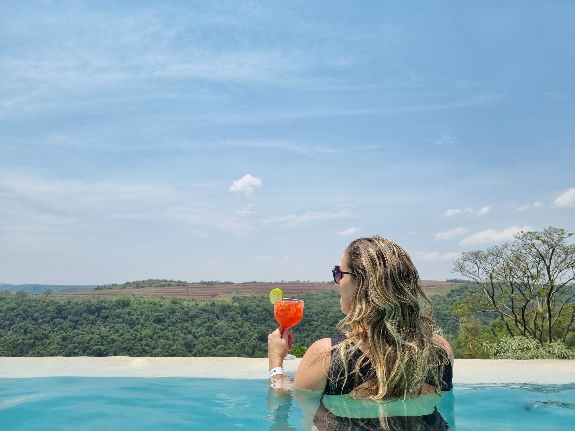 Dia seguinte, partimos curtir um maravilhoso day use no Recanto das Cachoeiras, o local possui estrutura de lazer integrada à natureza, um Mega Spa térmico ao ar livre com estrutura de 3.000 metros quadrados sendo 600 deles de spas, mantidos a 35 graus. Piscina praia, com a borda da cuesta, uma piscina com uma vista panorâmica de toda a paisagem das serras de Brotas. Oásis, uma piscina de água natural, corrente, com 1,40 metros de profundidade lindíssimo. Salão de jogos e Trilhas que te levam até a Cachoeira da Roseira e a Cachoeira Santo Antônio.