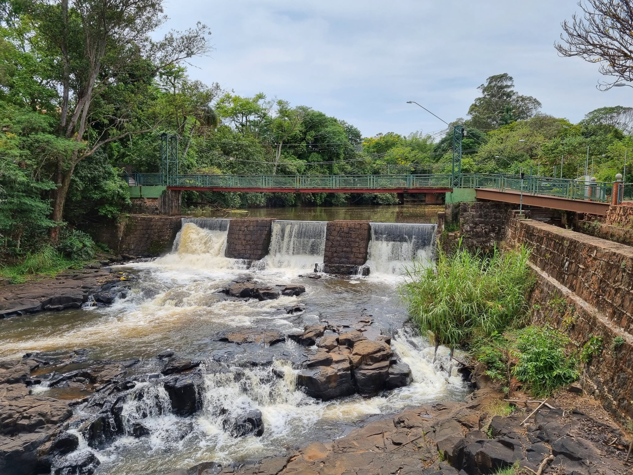 Já em nosso primeiro dia fomos dar uma volta no centro de Brotas e curtir o Parque dos Saltos. O parque são várias quedas d’água do rio Jacaré Pepira em meio a uma margem com mata ciliar preservada. É possível entrar no Parque dos saltos pelas duas margens do Rio Jacaré, do lado direito há uma escadaria rústica feita de pedras que desce margeando as quedas, após as quedas há uma ponte onde se pode atravessar o rio e chegar a casa de máquinas. Do lado esquerdo há uma canaleta por onde corria a água para a geração de energia e uma calçada ao lado, a uns 200 metros a frente há uma escadaria que desce para a antiga casa de máquinas que funcionava a antiga hidroelétrica. Com certeza algumas paisagens que vale a pena contemplar.