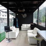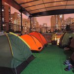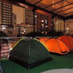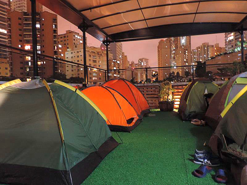 A área de camping fica na cobertura do prédio de 4 andares e funciona como uma nova opção de hospedagem na cidade. O piso é de grama sintética, a cobertura retrátil em caso de chuva, banheiros femininos e masculinos com chuveiros com água quente e limpos, cozinha comunitária muito bem montada e Wi-Fi.