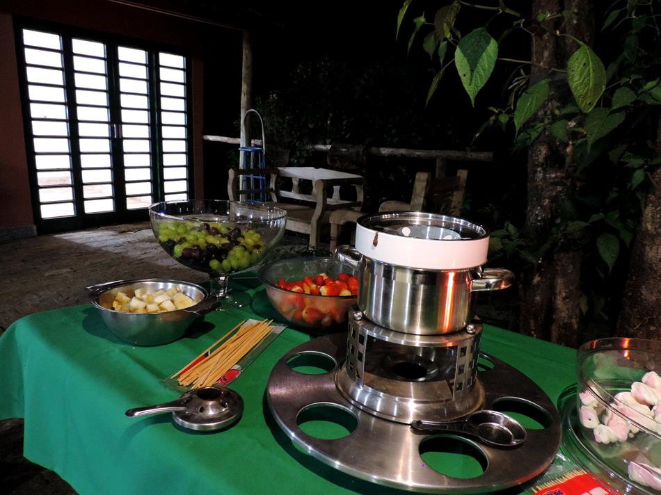 A noite fomos ao jantar dos namorados preparados pelo restaurante do hotel e nos deliciamos com pizzas, foundue de chocolate, marshmalows, fogueira e música ao vivo!
