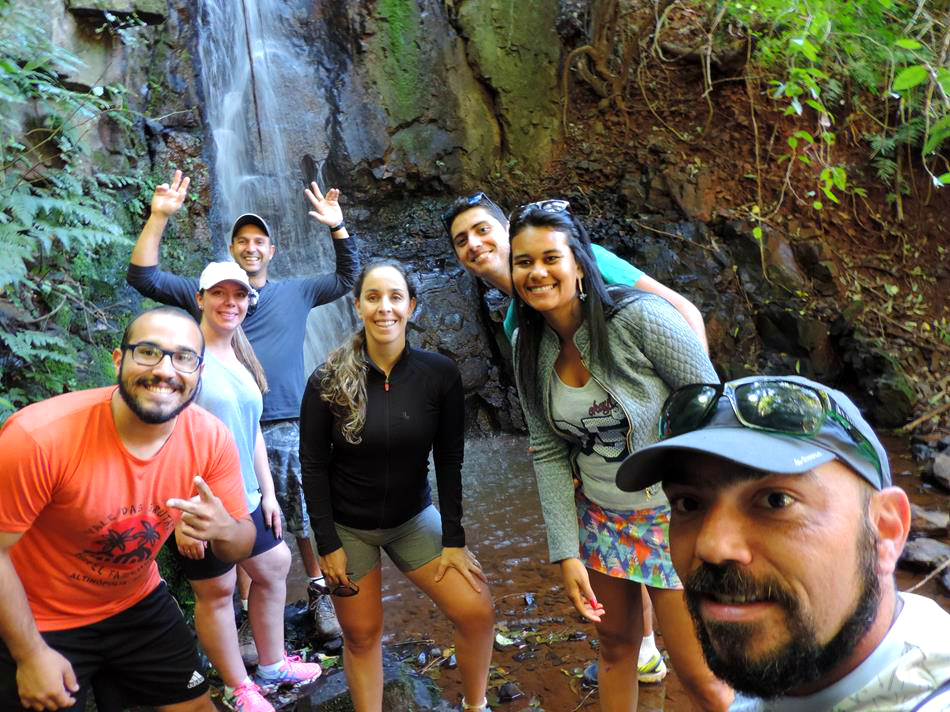 Acordamos cedinho e após um delicioso café da manhã, nos juntamos a outros hóspedes e fomos fazer uma caminhada pela mata que leva até a cachoeira da fazenda.