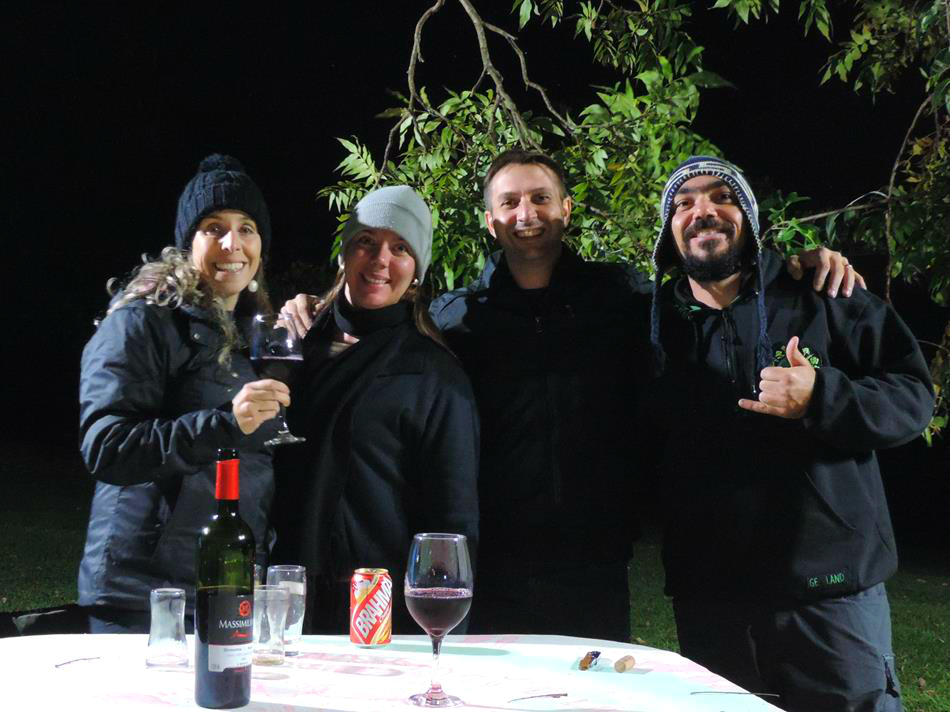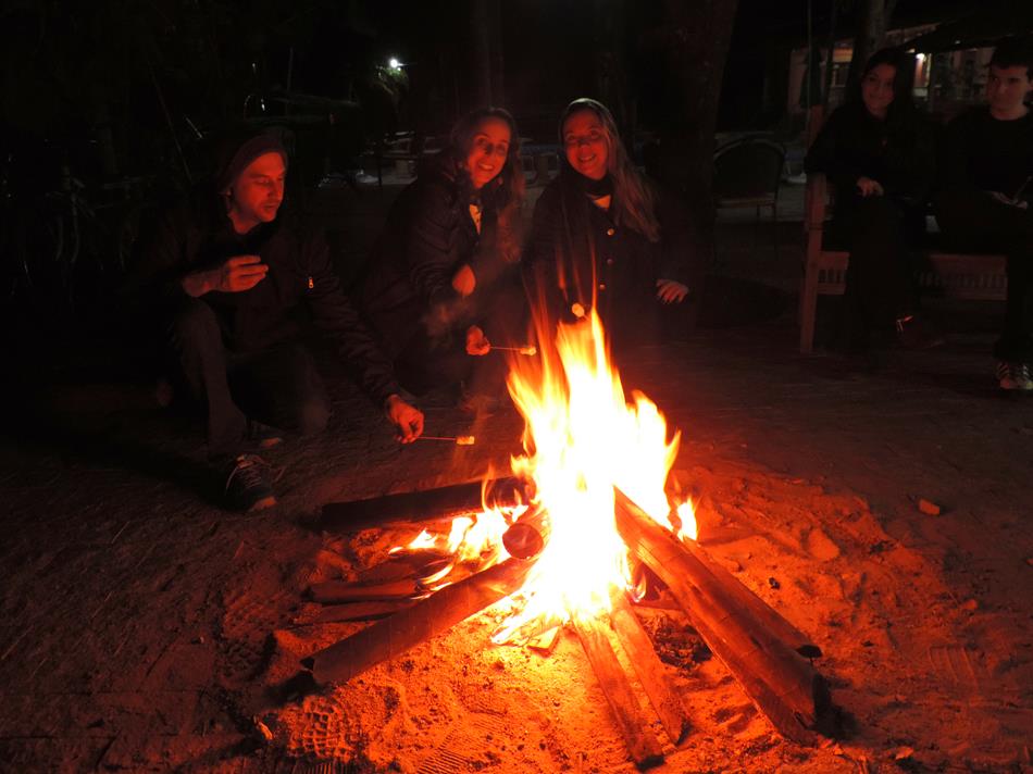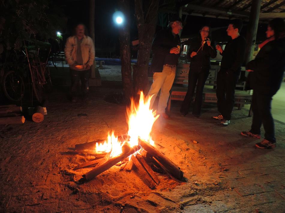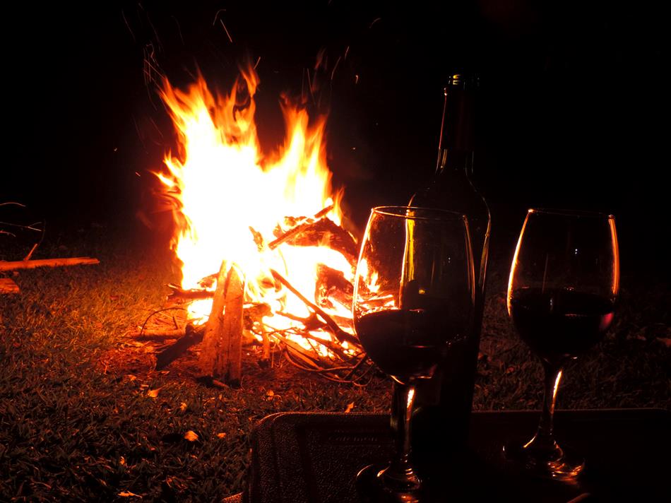 Para fechar a noite, fizemos uma bela fogueira na área de camping e bebemos um delicioso vinho ao luar!