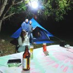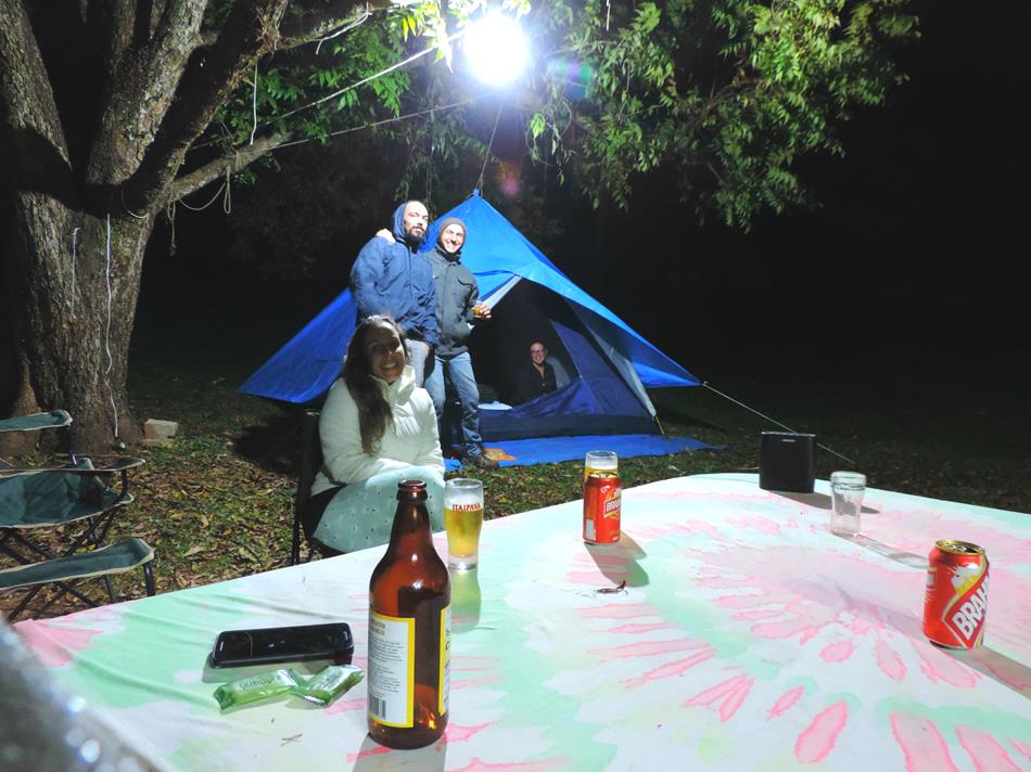 Desta vez tivemos a companhia do Ricardo e da Carol que já estavam a um bom tempo sem acampar e foram matar a saudade! Chegamos durante a noite e fomos recepcionados pelo Edgar que é o proprietário e também pelo Maradona que é o monitor responsável pelas atividades de lazer e foi nos apresentar a área de camping. Por se tratar de um final de semana comum e com muito frio, a área de camping que recebe milhares de pessoas durante os grandes eventos como o Forró da Lua Cheia e o Soulvision, estava vazia e ficou fácil encontrar um bom lugar para montar acampamento!