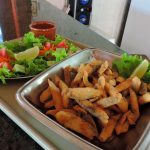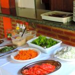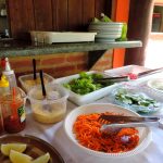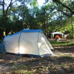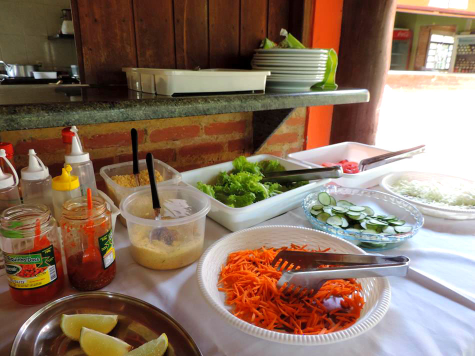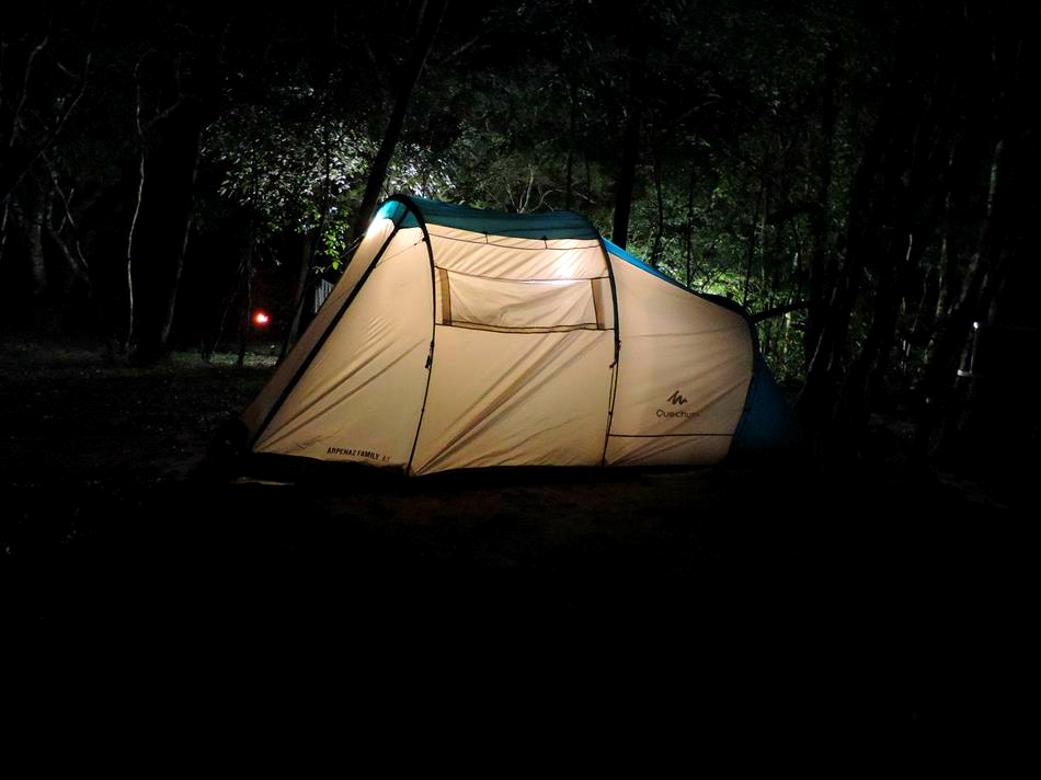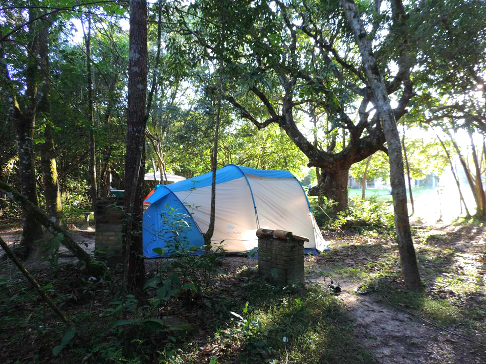 Quando chegamos ao camping já era noite e fomos recepcionados pelo Fabio que nos apresentou a estrutura. O camping possui vários pontos de energia elétrica e ficou fácil de instalarmos nossa lâmpada e montar nosso acampamento. Possui duas áreas de camping mas apenas a área 01 funciona na baixa temporada. É todo gramado e a maioria da área das barracas é sombreada por árvores enormes. Possui redário e uma linda piscina que acabou de ser construída e será inaugurada em breve. Os banheiros são bem limpos e os chuveiros tem água quentinha! Não possui cozinha comunitária e o restaurante serve café da manhã e almoço.