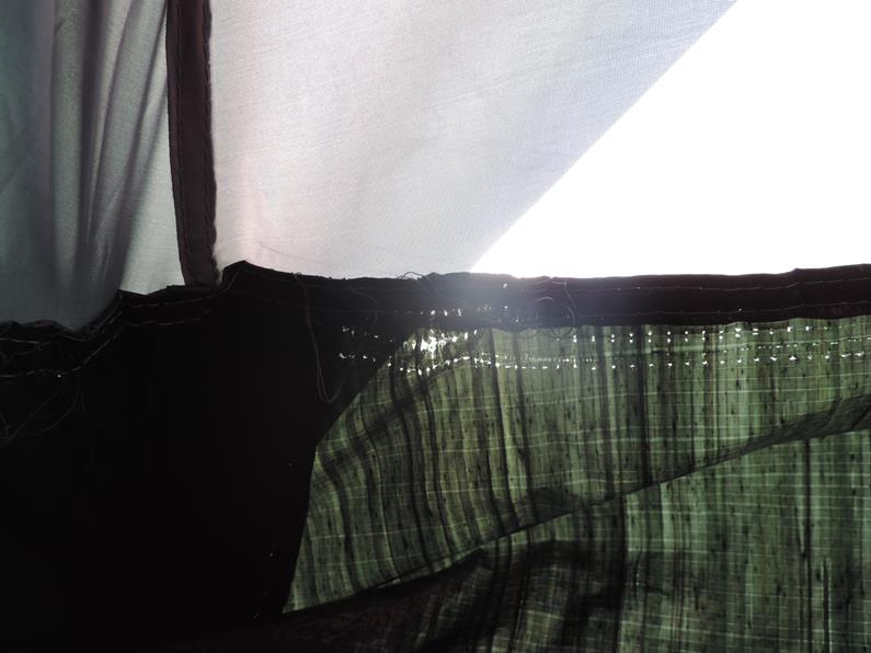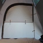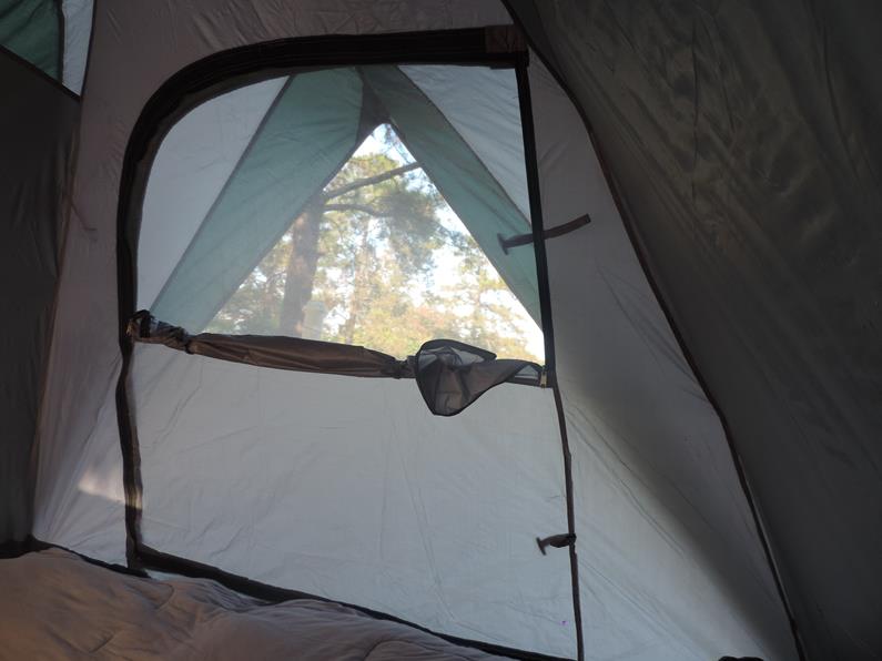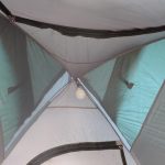 O quarto possui duas portas e a parte de cima de cada porta possui dois tecidos sendo que um deles é mosquiteiro e pode ficar aberto parcialmente para ajudar na ventilação. Tanto o tecido do sobre teto quanto o do quarto são impermeáveis o que é muito importante já que o sobre teto não cobre toda a barraca deixando as duas portas parcialmente exposta. O sobre teto têm costuras seladas, vai até o chão nas duas laterais da barraca e forma um avance em cada porta. As costuras do quarto, que ficam parcialmente expostas não são seladas, porém os zíperes são cobertos e protegidos por tecido impermeável.