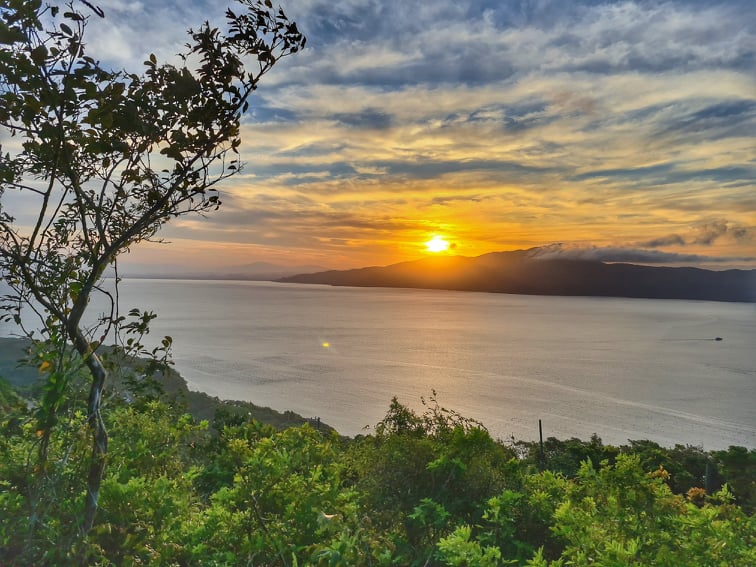 As praias voltadas para o Mar de Dentro (como Zimbros e Canto Grande) são excelentes para assistir ao pôr do sol.
