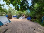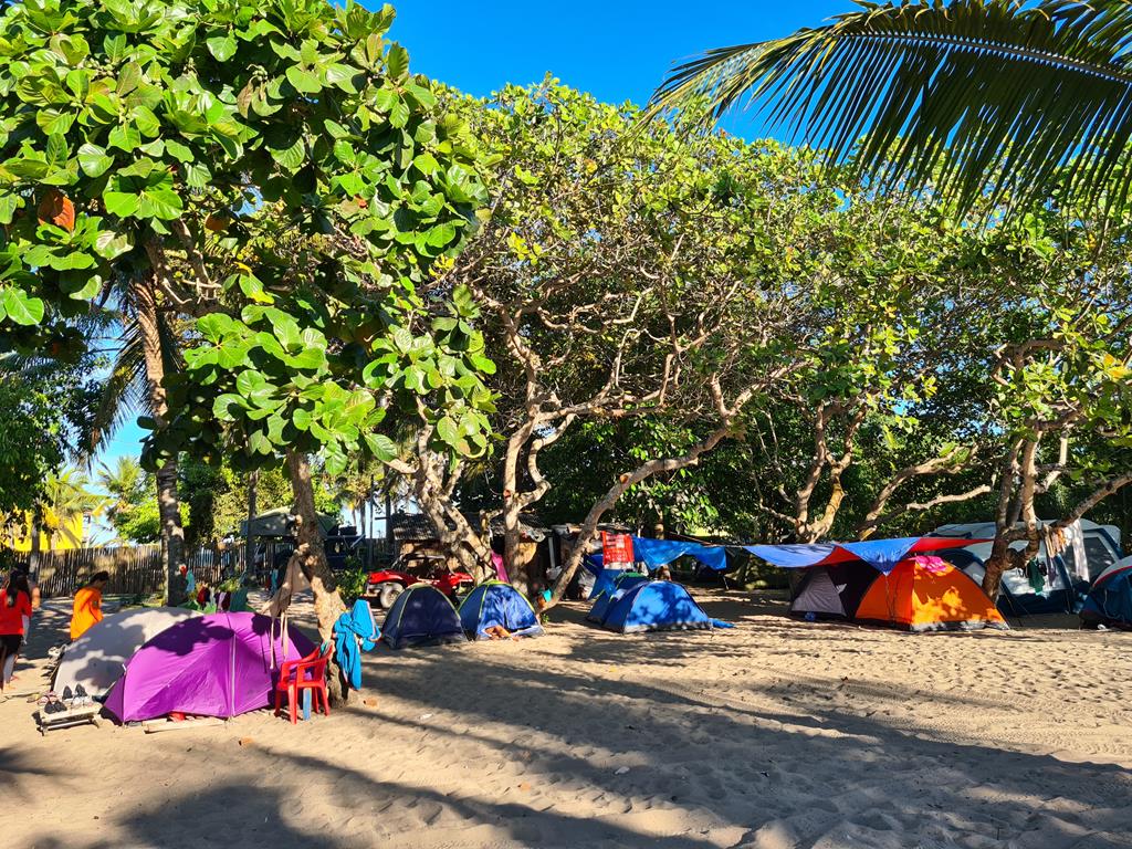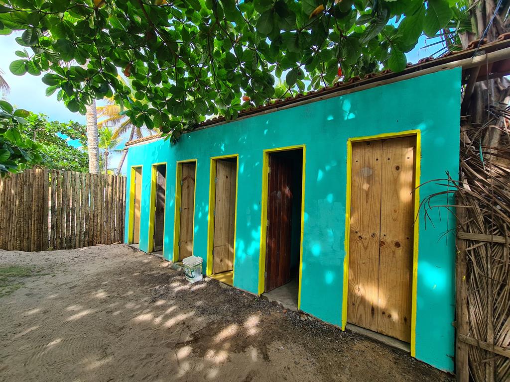 O camping possui 6 banheiros unissex com ducha e vaso sanitário. Tem energia elétrica 220v e uma cozinha comunitária. O Camping é todo de areia e arborizado.