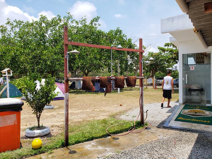 A estrutura do camping é muito boa, tem cozinha comunitária com 2 fogões, 3 geladeiras, muitos utensílios (panelas, garfos, facas, pratos, etc), tem churrasqueira, fogão e lenha e pias. Os banheiros femininos acabaram de ser reformados e os masculinos ainda são adaptados, pois serão reformados, e embora um pouco apertados, tem água bem quentinha. Junto ao camping funciona um trailer que serve café, almoço e jantar e também vende gelo e carvão. O espaço possui pontos de energia elétrica, tem segurança e conta com 27 câmeras de segurança.