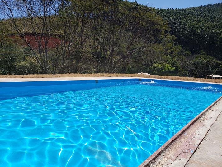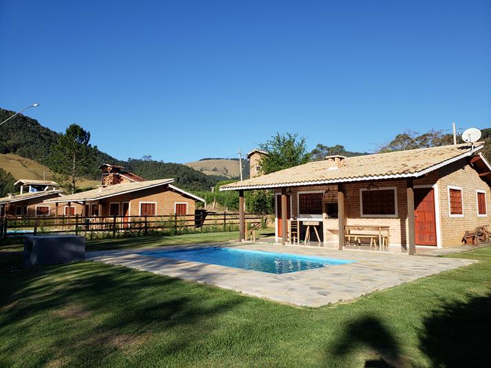 Além da área de camping o lugar conta com casas para locação, são 4 casas com estrutura para 8 pessoas cada e piscina particular.