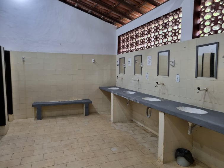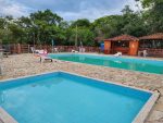Conta com cozinha comunitária, banheiros femininos e masculinos com vasos sanitários e duchas quentes, pequeno playground e espaço para jogos. Duas piscinas (infantil e adulto) e área para churrasco.
