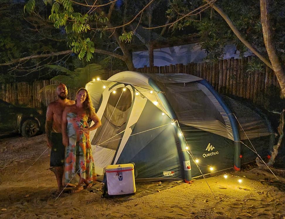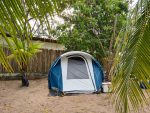 A área para montar barraca é toda de areia e bem limpinha.