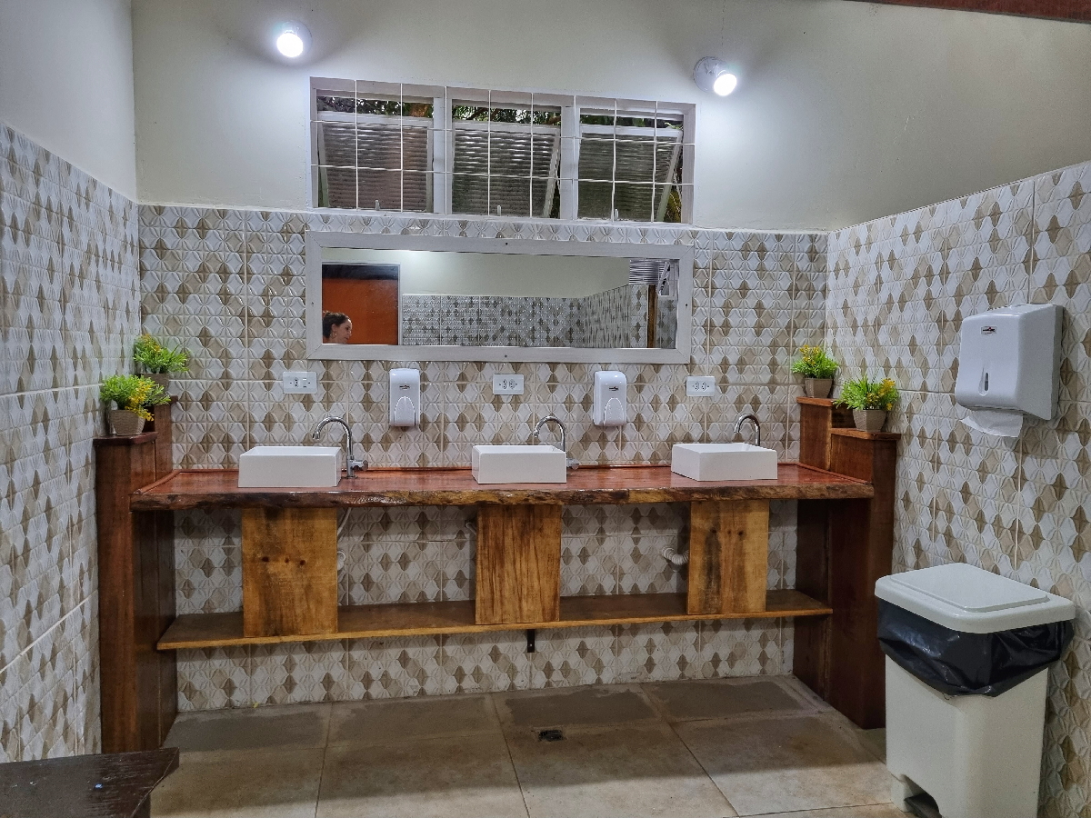 Banheiros: Banheiros feminino e masculino com ducha quente e limpo.