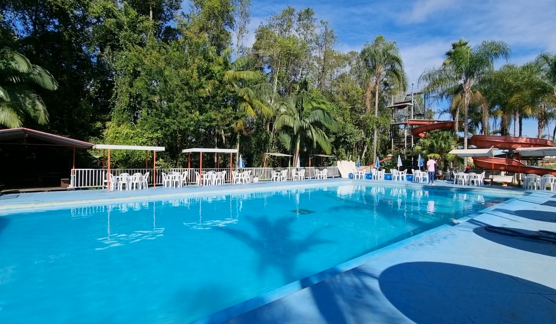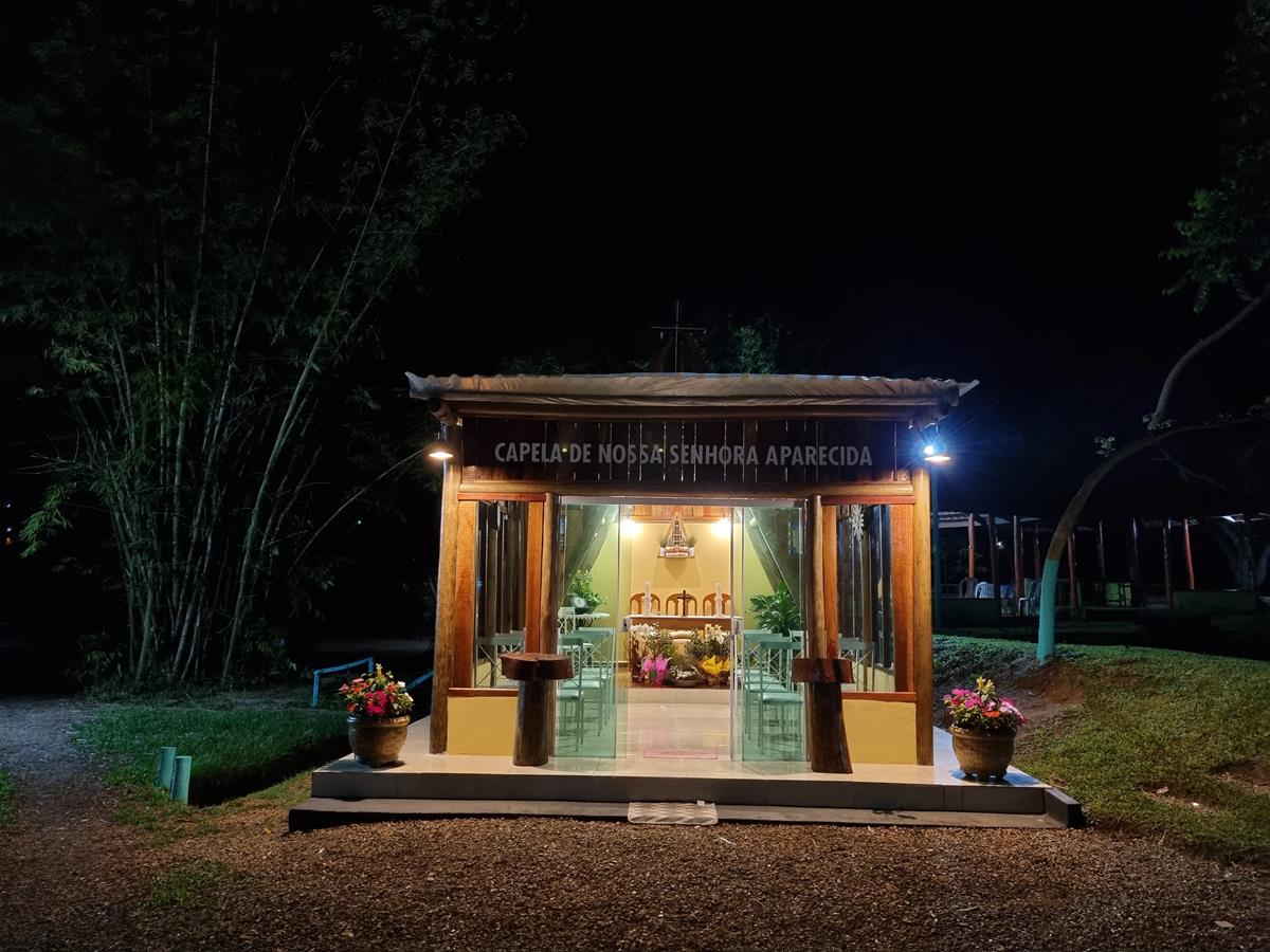 O camping e pousada conta com Lago para pesca, capela, parque aquático, salão para festas, estacionamento para trailers, churrasqueiras cobertas, quiosques e playground.