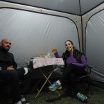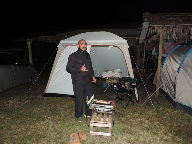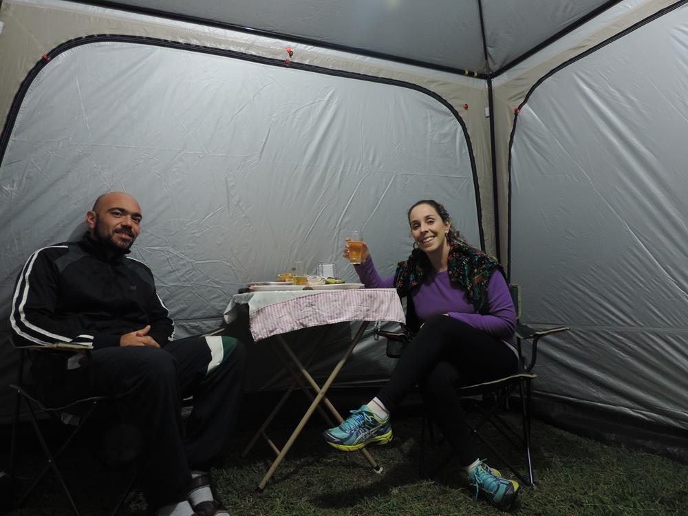 Logo que chegamos ao camping fomos recepcionados pelo Cássio, que é o proprietário e nos apresentou o local. O camping tem espaço coberto para montar cerca de 50 a 60 barracas e o que nos chamou muita atenção foram os bangalôs 2 andares para barracas iglus e também e também as várias barracas que o camping tem para alugar.