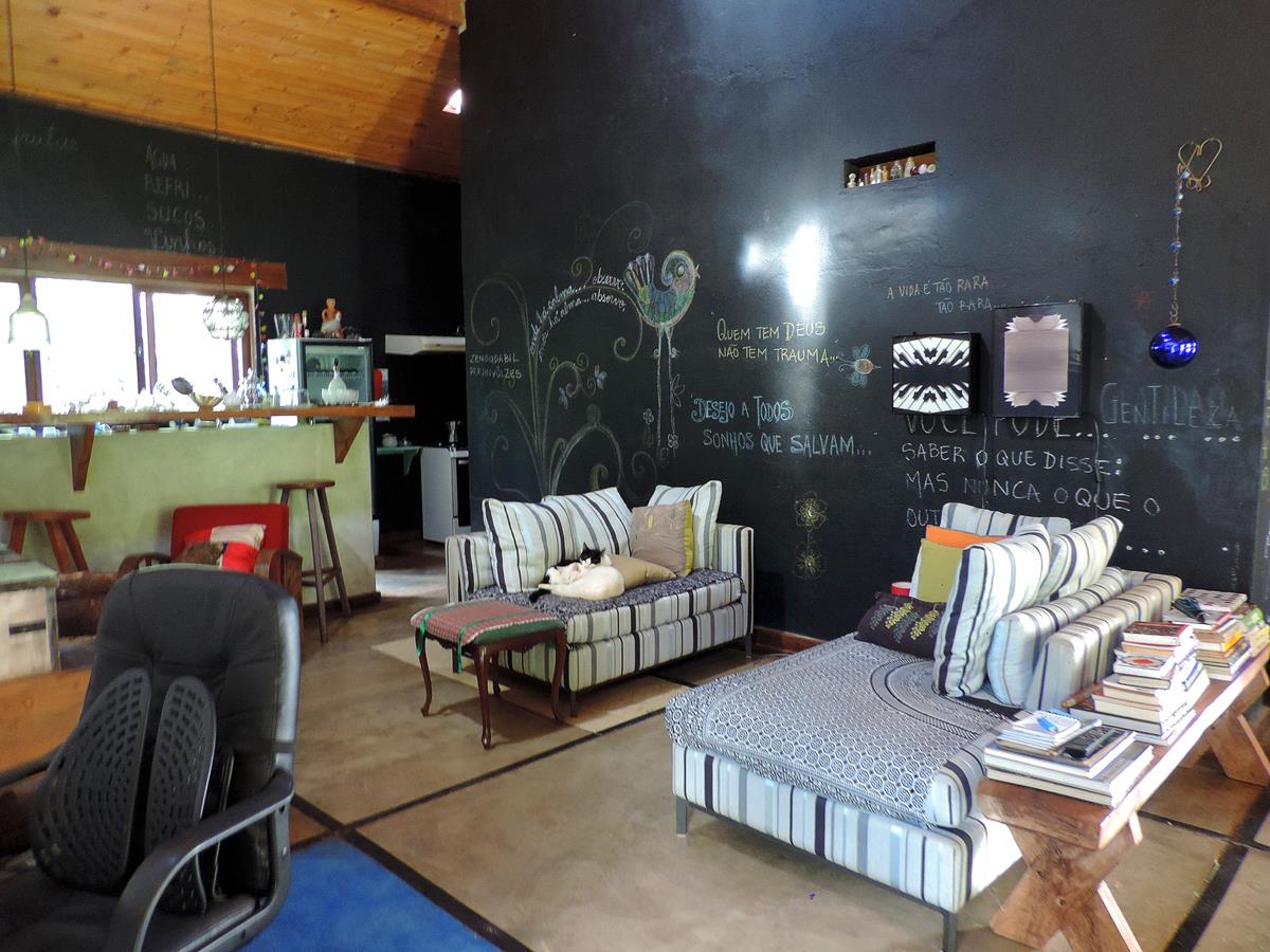 A pousada e camping fica localizada em Brumadinho/MG na encosta da Serra da Moeda, ficando a 30 km do Inhotim. É a casa de uma artista, com animais de estimação, livros, boa música ambiente, bons vinhos, um lindo jardim com piscina e muita arte. O espaço é muito legal, com piscina, jardim muito bem cuidado, 4 quartos da pousada lindos e agradáveis e ambientes com uma vibração positiva pra lá de boa!