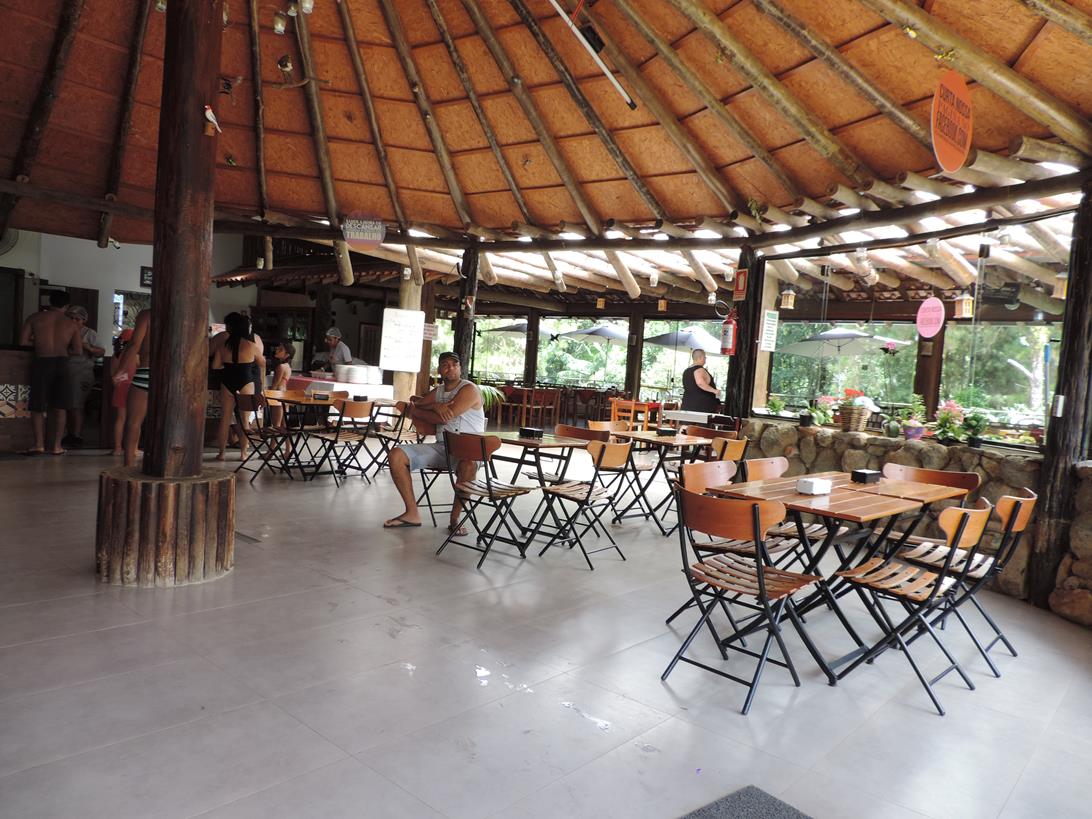 Possui uma lanchonete que oferece porções de peixes e um restaurante que serve café da manhã, lanches e petiscos.