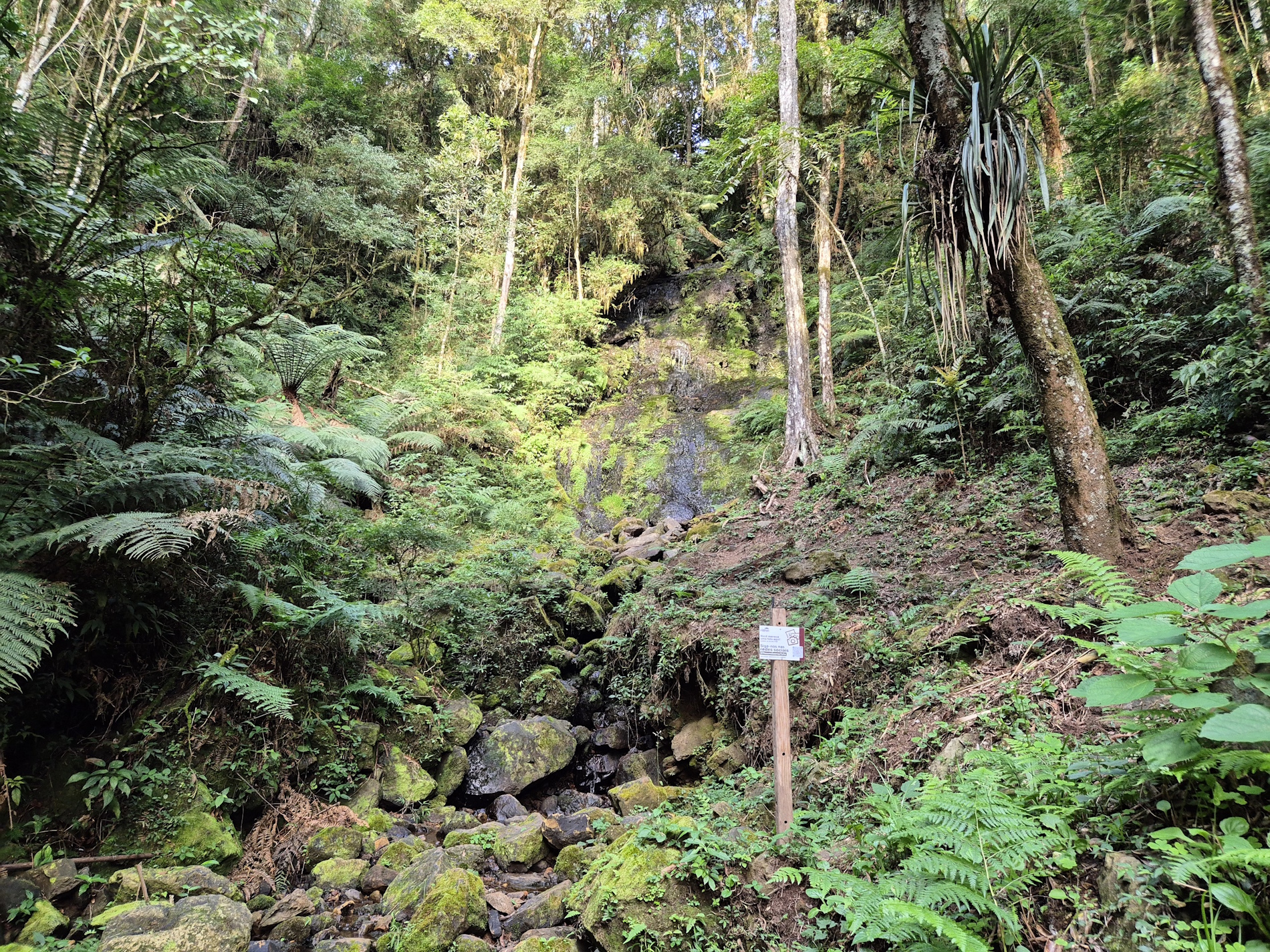 Fizemos a Trilha para a Cachoeira do Índio, ela segue um carreiro todo demarcado de 1400 metros, com várias placas de sinalização. Além de contar com sinalização explicativa sobre nossa Fauna e Flora.