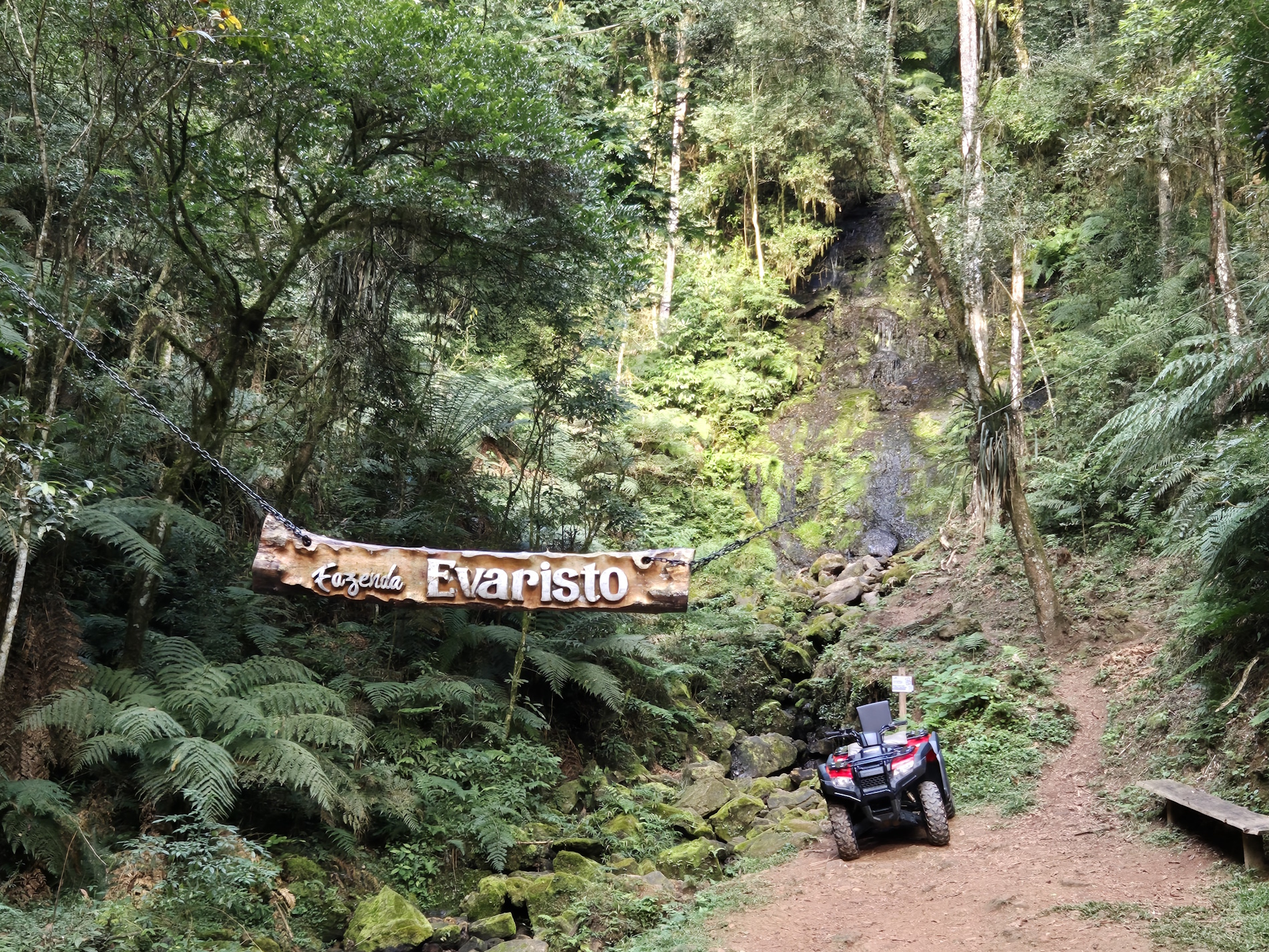 Em nosso passeio de quadriciclo conhecemos a fazenda toda e também paramos na Cachoeira do Cipó. Role imperdível.