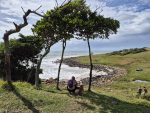 Partimos caminhando do camping em direção a Praia da Vigia de onde sai a trilha que leva até a Praia do Silveira. Percorremos no total cerca de 8km em um percurso que levou 3h e 30 min. Essa é uma das trilhas mais procuradas da região e passa por paisagens e lugares incríveis e é bem sinalizada.