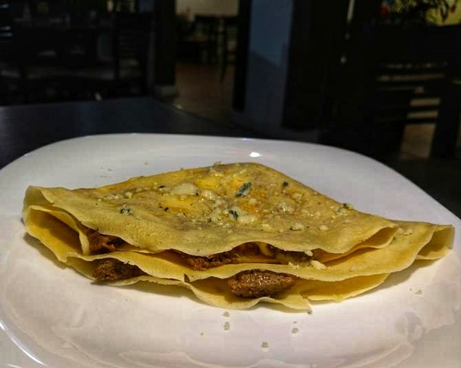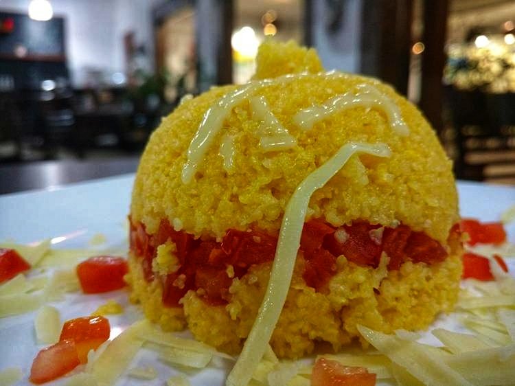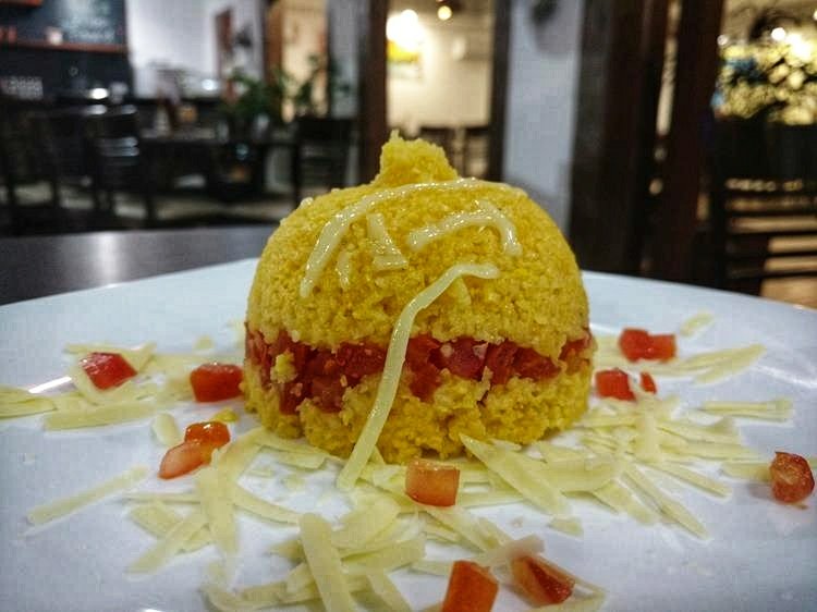 Em nossa visita provamos de entrada um pão italiano coberto com queijo Grana Padano e purê de damasco uma verdadeira explosão de sabores. Já nossas escolhas para o prato principal foram o cuscuz recheado de camarão e o crepe Farol com filé e gorgonzola.