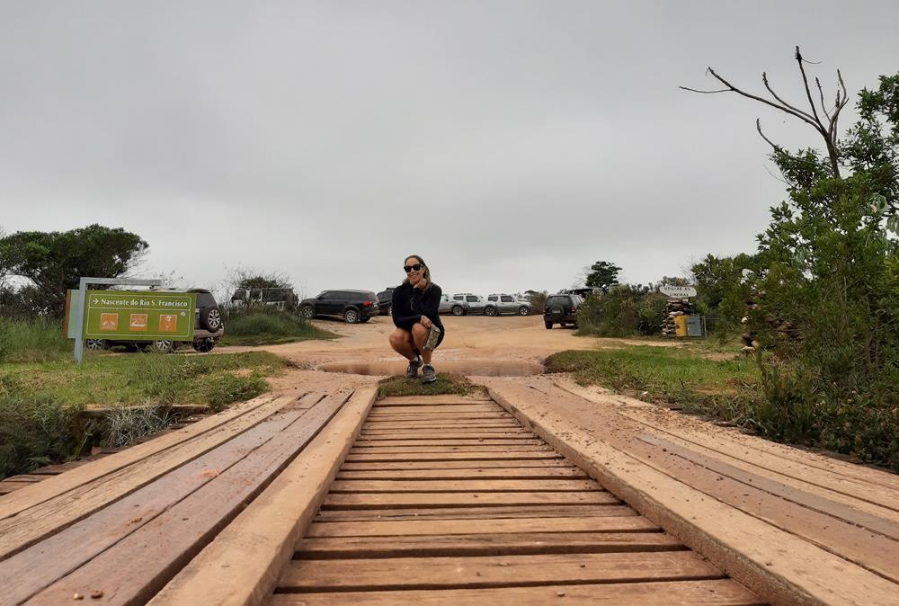 Nosso grupo ficou hospedado na Pousada Chalés da Canastra no município de Vargem Bonita MG. A pousada está se preparando para receber barracas e nós fomos os primeiros a acampar por lá. Com localização privilegiada, distante 3,5 km de Vargem Bonita e 8 km de São Roque de Minas, entre a parte alta e a parte baixa do Parque Nacional da Serra da Canastra e próxima a cachoeiras maravilhosas e rodeada por natureza exuberante. Nós chegamos antes do início da programação dos passeios e aproveitamos para fazer um passeio a pé até o Rio São Francisco que fica bem pertinho da pousada.