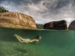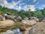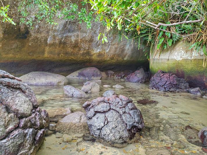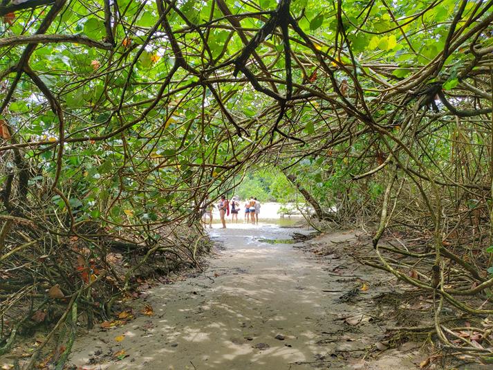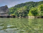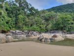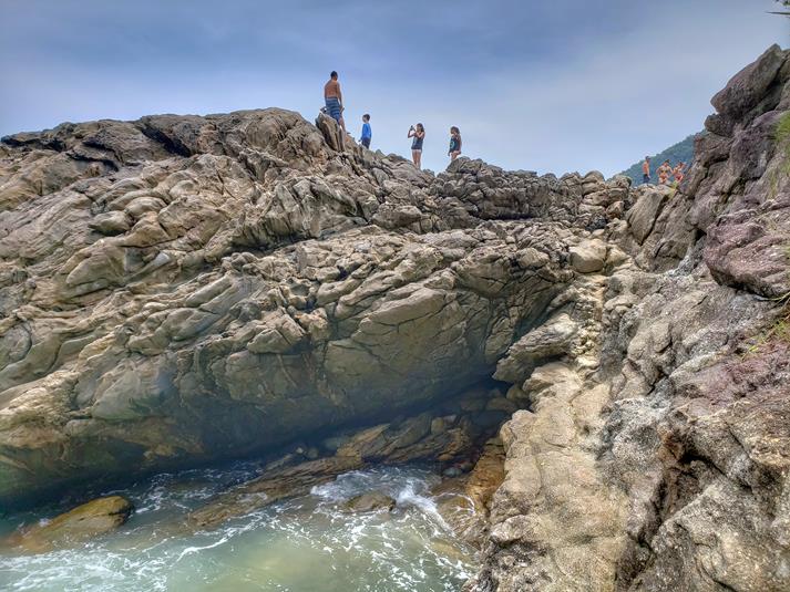 A Praia do Cachadaço está localizada entre a Praia do Meio e a Piscina. O acesso é feito por trilha ou de barco. Nós saímos do camping bem cedinho e fomos por trilha… A trilha até a praia é fácil e para chegar a piscina deve-se caminhar por toda a extensão da praia e pegar a trilha nas pedras do outro lado. A trilha que leva até a piscina tem vários pontos com lama escorregadia e requer bastante atenção dos visitantes!