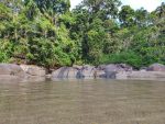 Nossa primeira parada no passeio de barco com o Magno foi na Praia da Ponta Negra. A praia é habitada por pescadores e foi a última da região a ter acesso a energia elétrica.