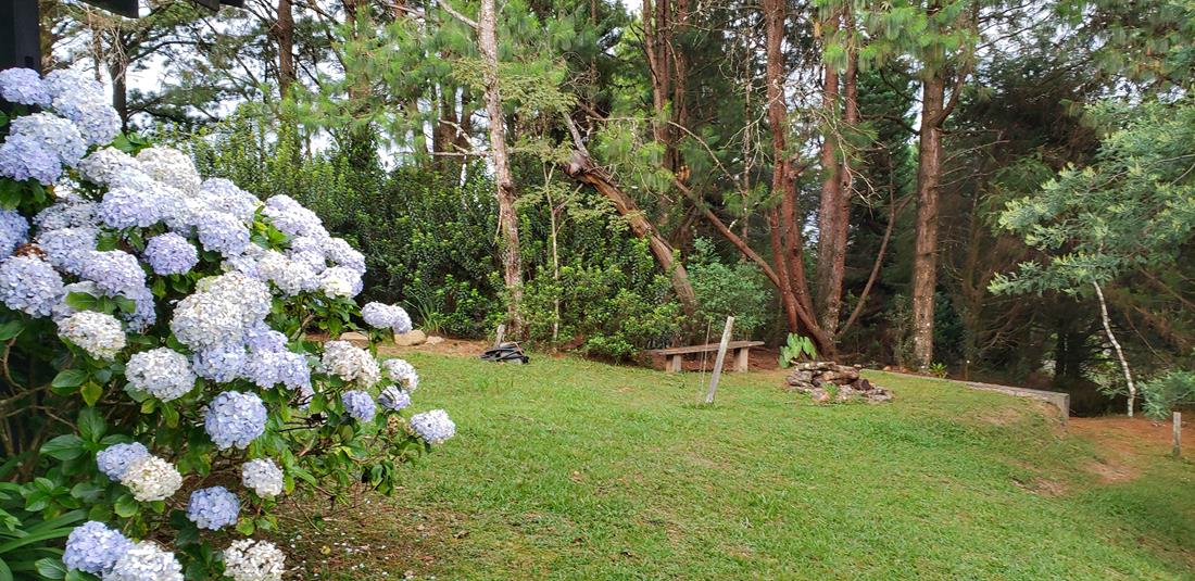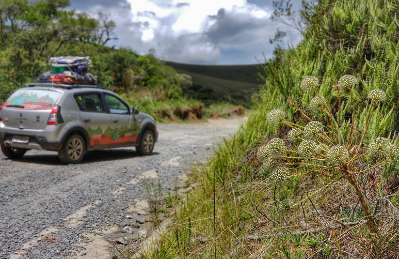 Quando saímos da Casa de Pedras o tempo fechou a começou a chover muito! Até paramos para conhecer uma área de camping ali perto, mas a chuva não deu trégua e não conseguimos fazer fotos e vídeos.