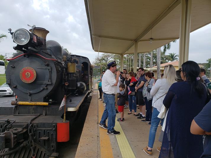 Antes de o trem partir um dos monitores do passeio explica tudo sobre o funcionamento da Maria Fumaça e também sobre a importância que a ferrovia teve no desenvolvimento do nosso país e do interior de SP.