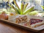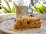 Tomamos um cappuccino acompanhado da tradicional Appeltaart – torta de maçã e do Rozen Gebak – Doce de Rosas.