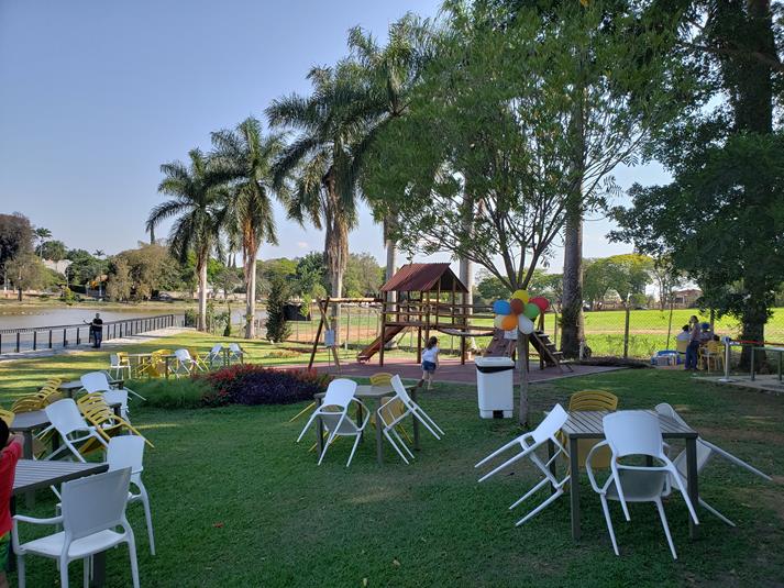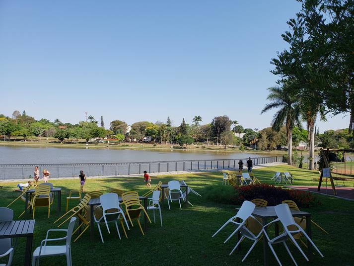 O ambiente é muito agradável e o gramado a beira do lago deixa tudo ainda mais gostoso.