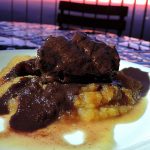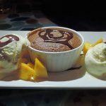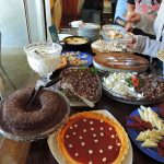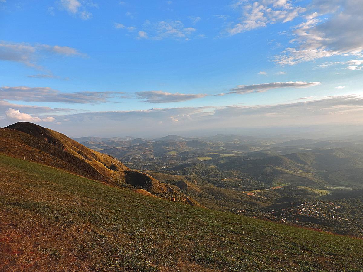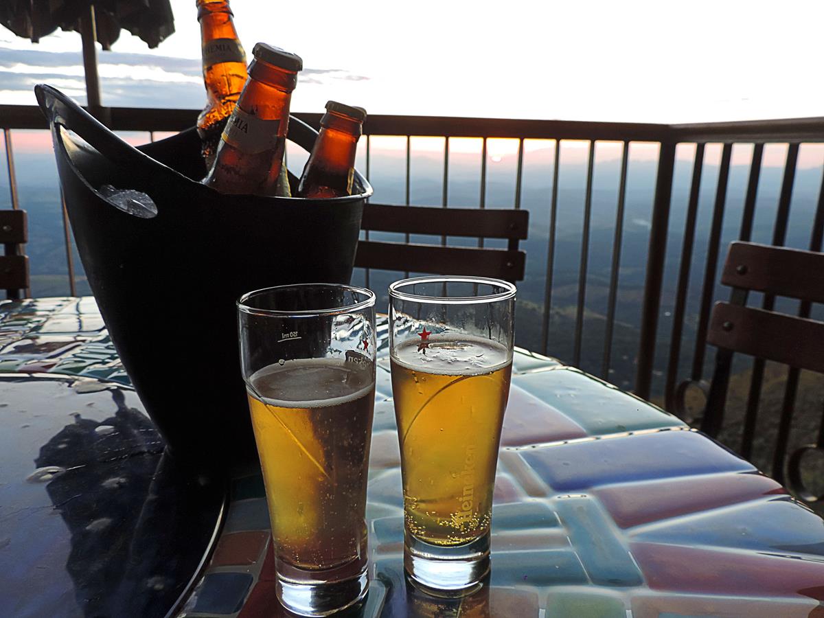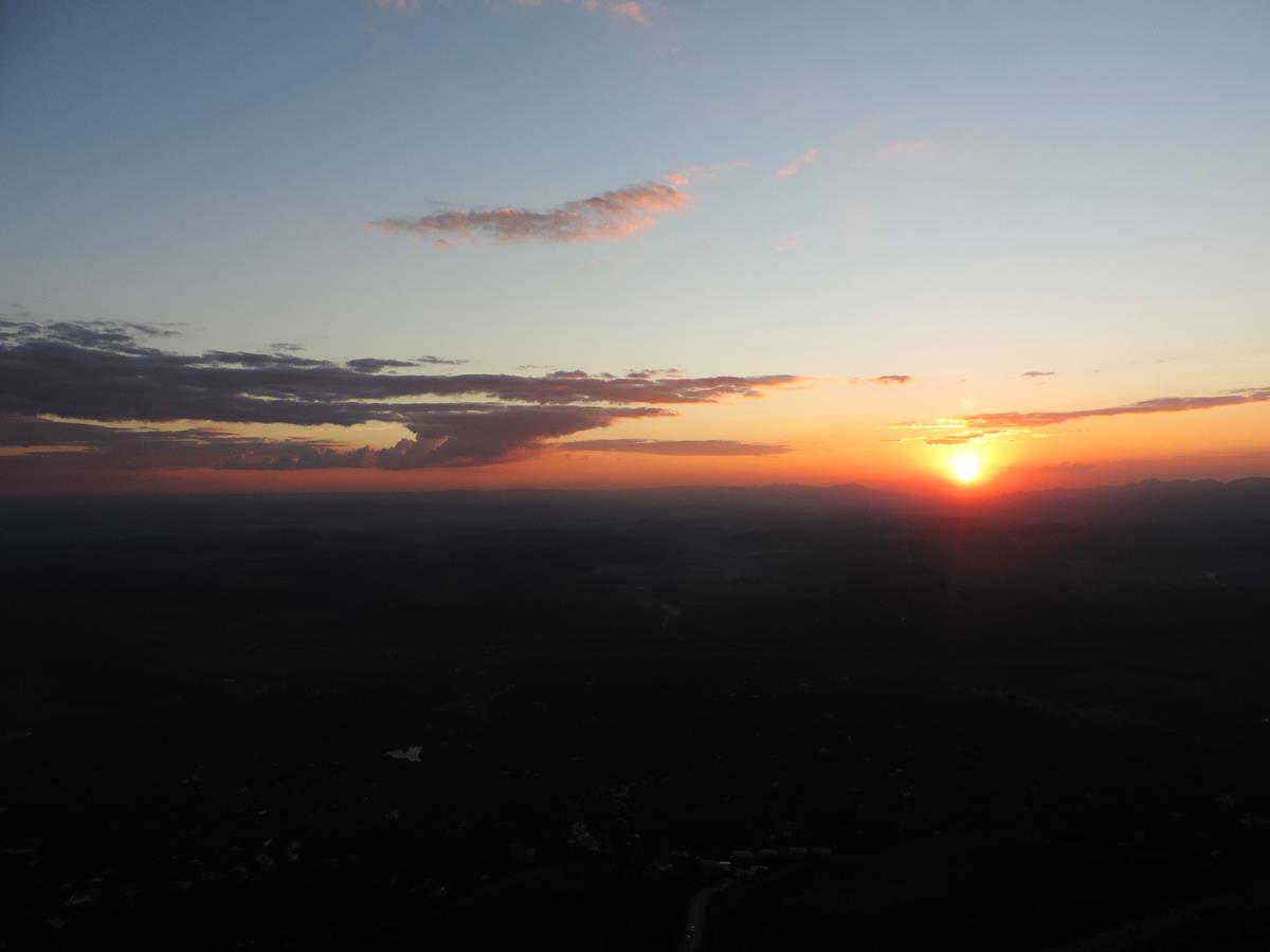 Montamos acampamento e fomos ao Topo do Mundo que fica a cerca de 6km da Pousada e tem esse nome devido aos seus 1450 metros de altitude, bem no alto da Serra da Moeda. Após curtir um pouco a vista maravilhosa do local, pudemos curtir o pôr do sol acompanhado de um jantar espetacular no Restaurante Topo do Mundo. Nosso pedido foi: entrada – costelinha de porco ao molho barbecue com goiabada, pratos principais – risoto caipira e filé com purê de maçã ao molho de açaí. A sobremesa um Gran Gateau de comer ajoelhado! Tudo muito saboroso e atendimento nota 10!