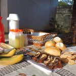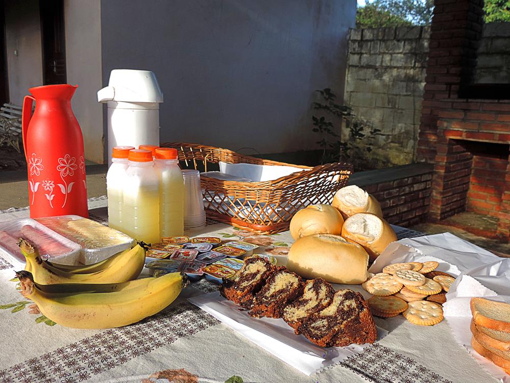 Sábado logo às 8h da manhã fomos surpreendidos com um delicioso café da manhã entregue na porta da Barraca! Isso mesmo, um kit de café da manhã está sendo entregue na porta das barracas e chalés! Foi a maneira, muito criativa, que o Jafar encontrou para atender a todos enquanto o restaurante passa por reformas.
