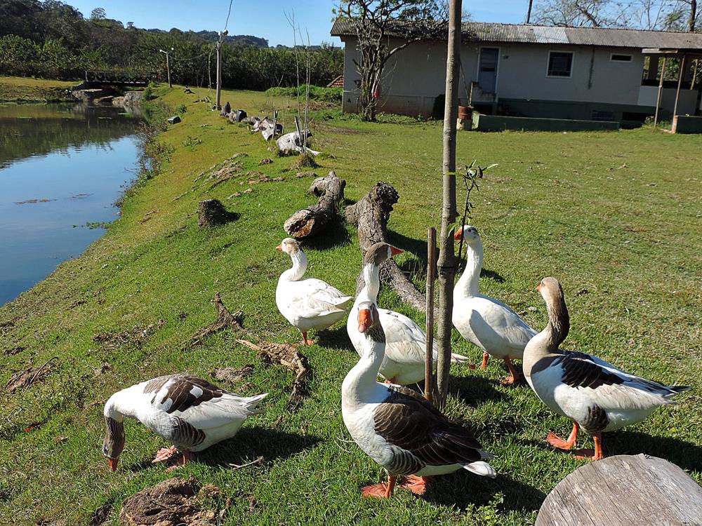 Após o delicioso café da manhã fomos conhecer a estrutura do camping. O Carrion está em atividades a 37 anos e está passando por muitas melhorias. O espaço é muito grande e possui várias piscinas, grandes lagos, banheiros, áreas com churrasqueiras, quadras de tênis, quadra de vôlei e mais de 160 chalés. Logo na entrada do camping há uma fazendinha com vários animais. Tivemos a sorte de ter um carneirinho que havia nascido a apenas cinco dias e poder pega-lo no colo.