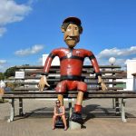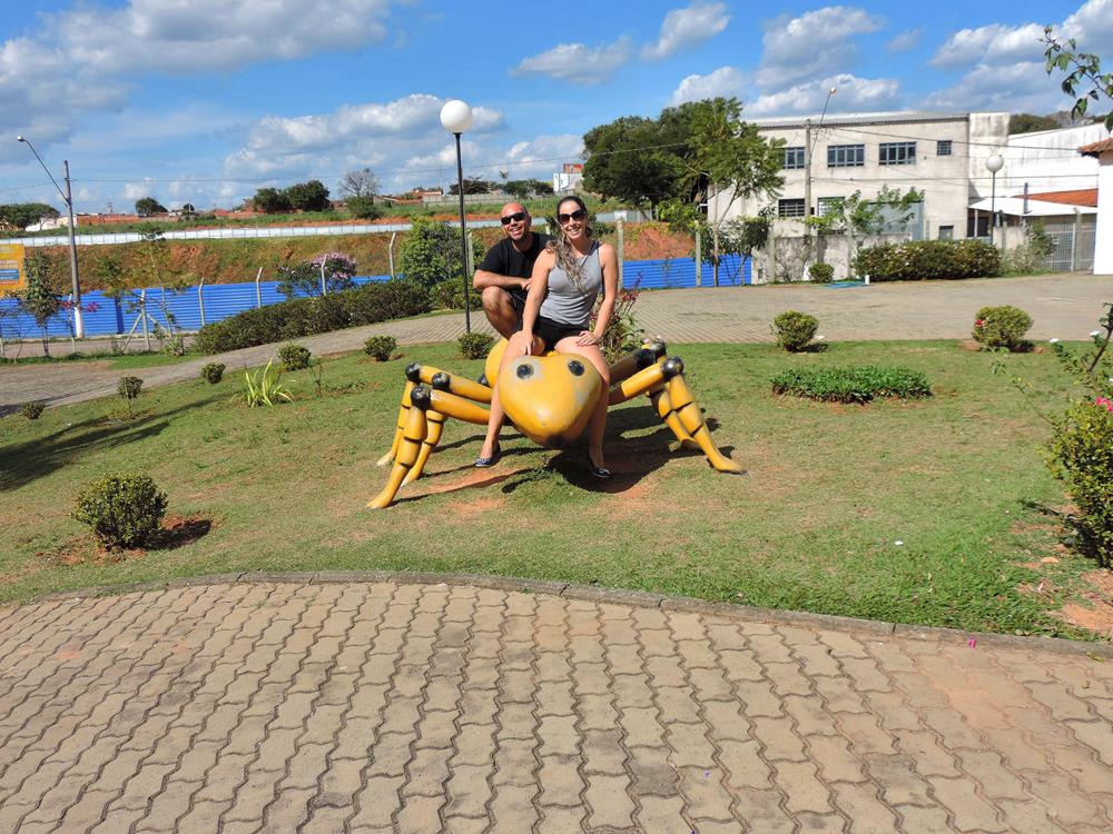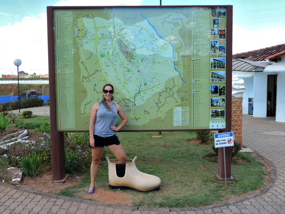 Almoçamos no centro da cidade e fomos conhecer a Praça da Matriz que abriga o orelhão e o semáforo gigante e a Praça dos Exageros, um dos atrativos turísticos da cidade que foi inaugurada no ano de 2012 para consolidar ainda mais a fama do município.