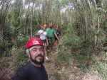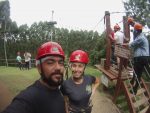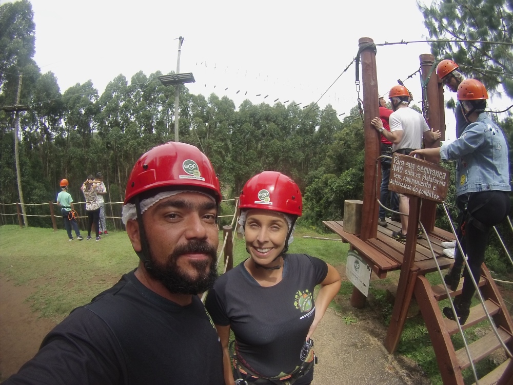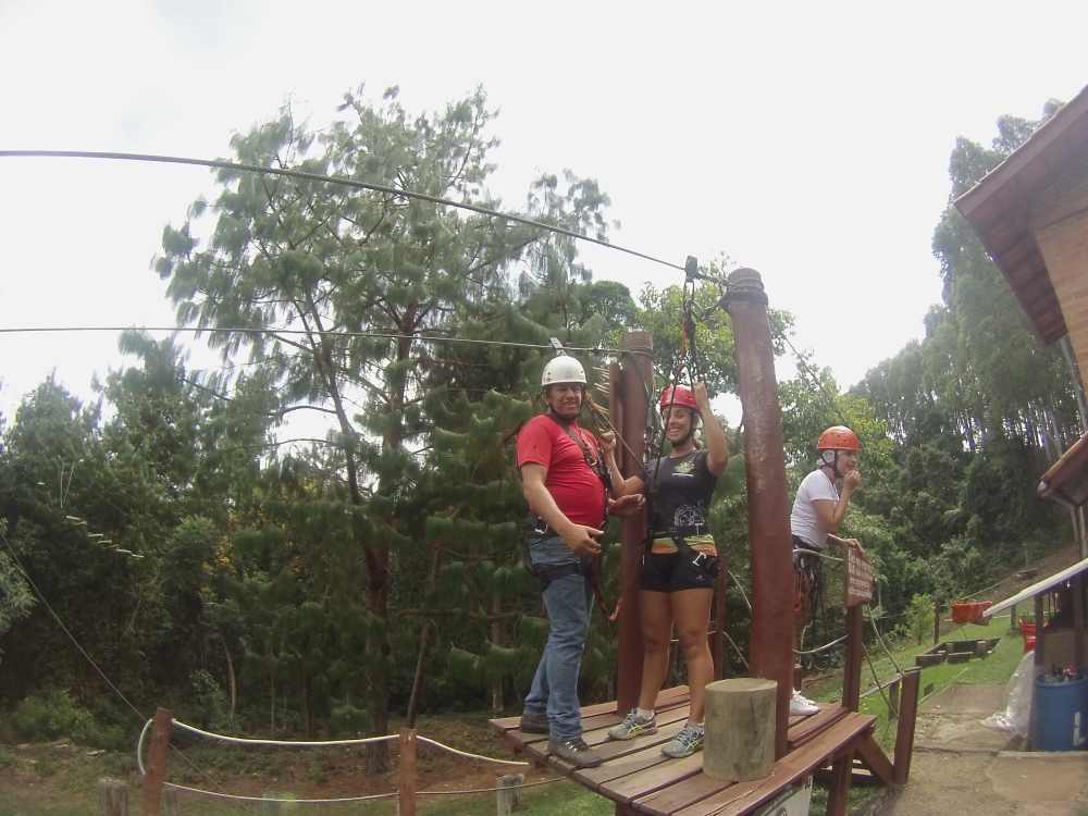 Terminada a trilha seguimos para a Fazenda Radical, um espaço que possui disponíveis 7 atividades de tirar o fôlego: Mega Tirolesa, Arvorismo, Parede de Escaladas, Arco e Flecha, Passeio de Quadriciclo, Falcoaria e Slackline. Começamos com a Mega Tirolesa sendo uma de 450 metros e outra de 475 metros totalizando 925 metros de emoção e adrenalina a mais de 70 metros de altura. É a maior Mega Tirolesa de Monte Verde e podemos afirmar que a vista de lá de cima é inesquecível.