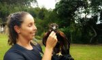 A vivência começa com uma breve explicação do biólogo Riuvanio, nos mostrando as dependências, algumas das aves e seu principal alimento (ratos). O bate papo é muito bom e ali são contados detalhes do dia a dia das aves que ali estão e também sobre a técnica de falcoaria. na sequência seguimos para o gramado com a Lyra que é um Falcão Asa de Telha fêmea muito simpático. Durante a vivência tivemos a oportunidade de alimentar a Lyra que vem voando lá de cima das árvores e pousa delicadamente em nossos braços Uma experiência única. Para completar a experiência tiramos fotos com a linda Suindara Snow, uma espécie de coruja muito comum no Brasil, bastante conhecida por construir seu ninho em torres de igrejas e locais habitados.