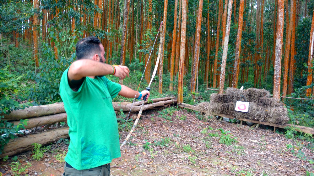 Para baixar os ânimos fomos fazer um arco e flecha que requer concentração, pontaria (nem tão bons, rsrsrsr) e boa visão. Chegado perto das 15 horas, tínhamos horário marcado para conhecer a Escola Mineira de Falcoaria onde vivenciamos momentos que jamais esqueceremos com as aves de rapina. A falcoaria é a técnica utilizada por povos de todo o mundo para o treinamento de aves rapinantes (águias, gaviões, falcões, corujas, entre outras), e talvez uma das mais antigas e fantásticas formas de interação homem/natureza.