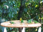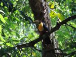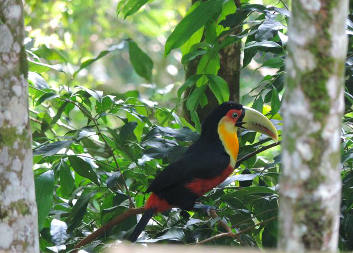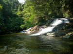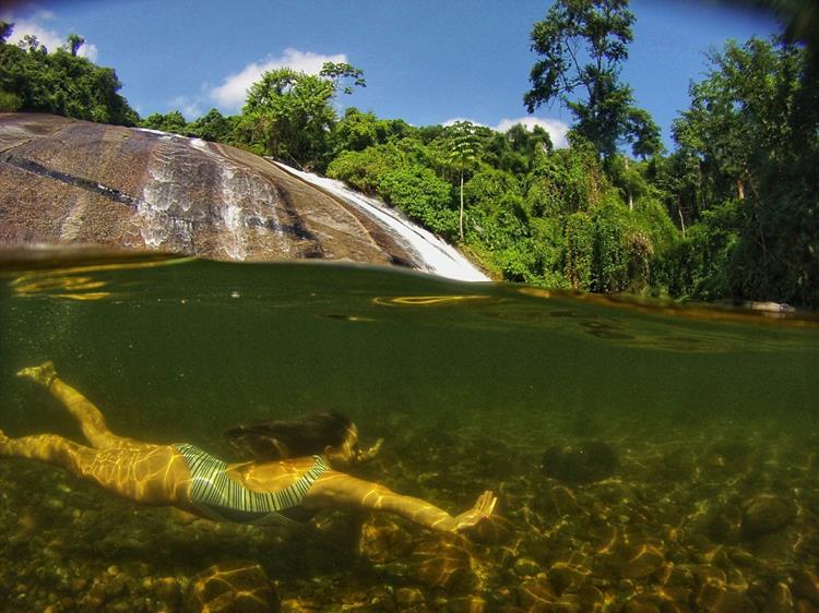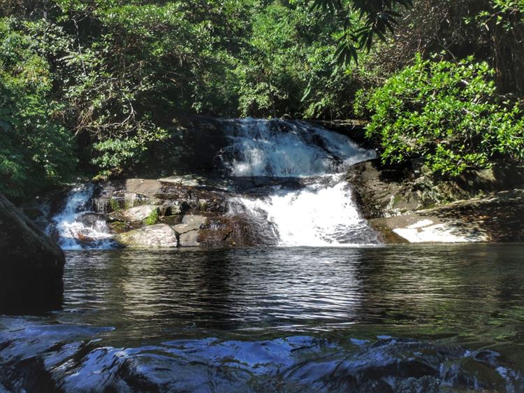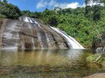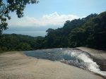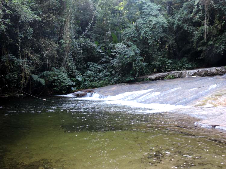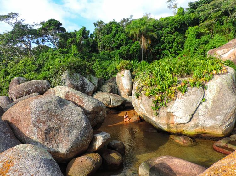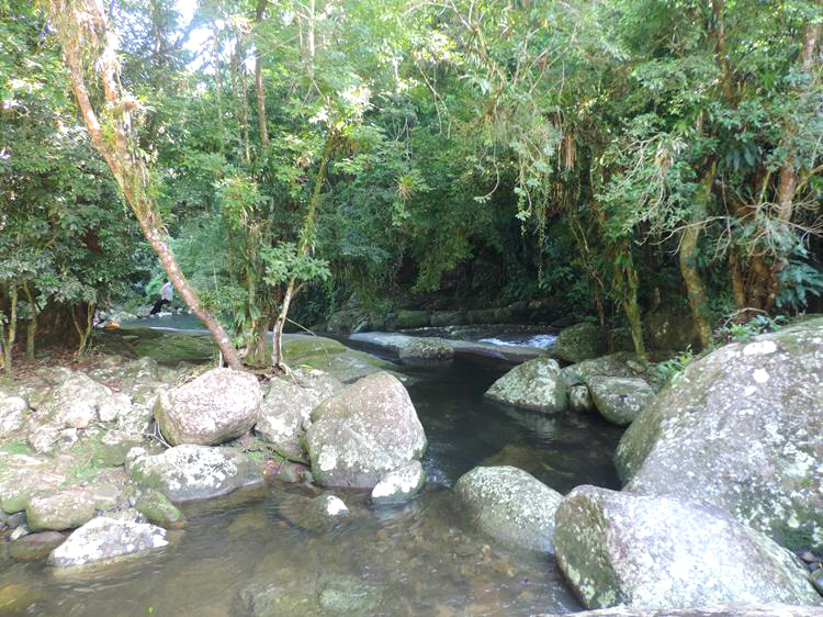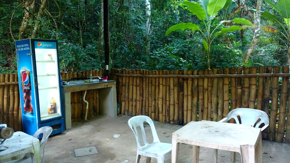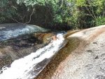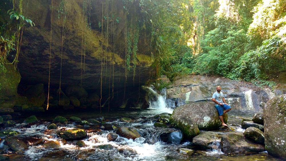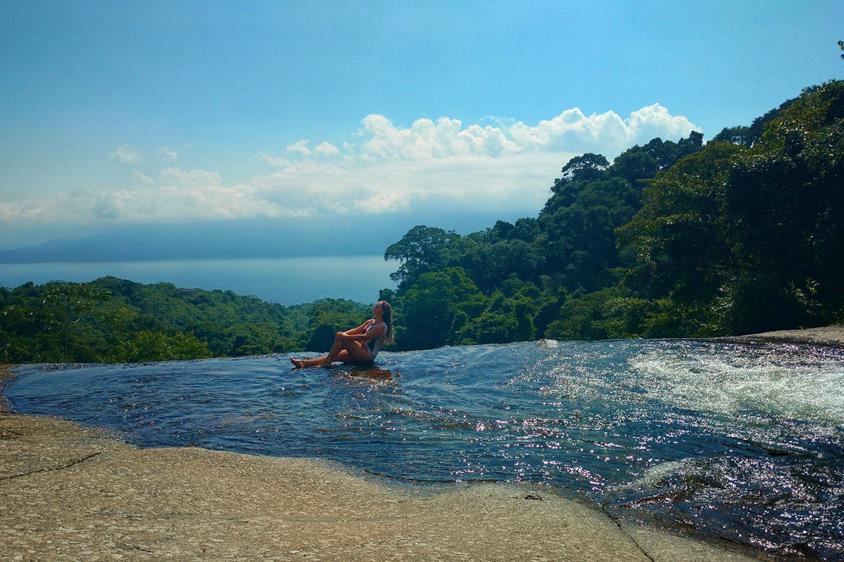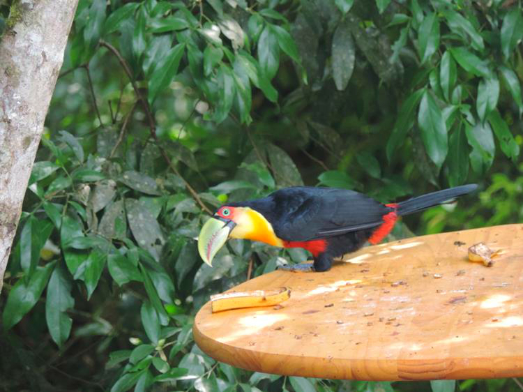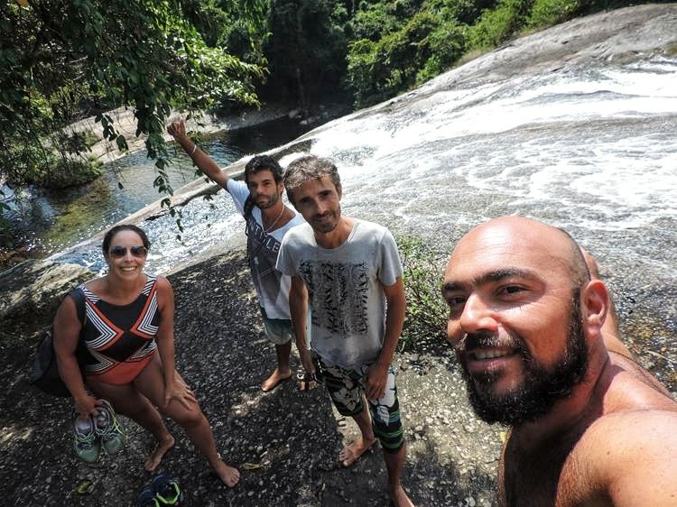 Na manhã seguinte fomos visitar a Cachoeira da Toca que fica bem pertinho do Camping e é uma das mais conhecidas da Ilha. O local é muito bem organizado e conta com ótima estrutura turística com bar, vestiários, monitores e repelente grátis! Além de cachoeiras, piscinas naturais e um escorregador natural, tem também um engenho de cana de açúcar que produz cachaças artesanais desde 1957! Logo na entrada ficamos por um bom tempo observando e fotografando as diversas espécies de aves que vem aproveitar a variedade de frutas que são colocadas no comedouro!